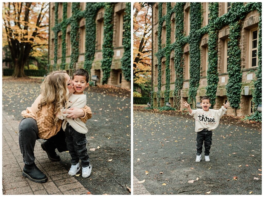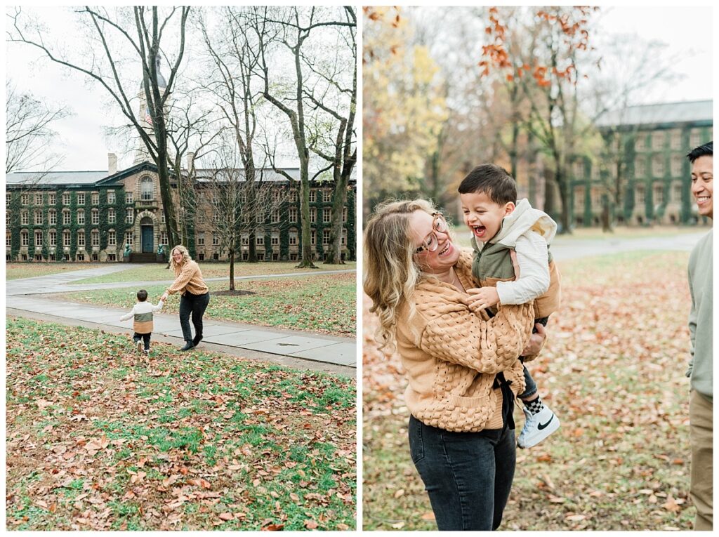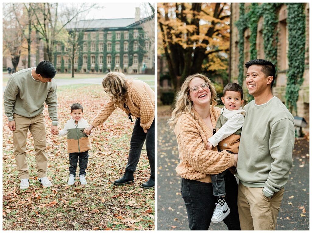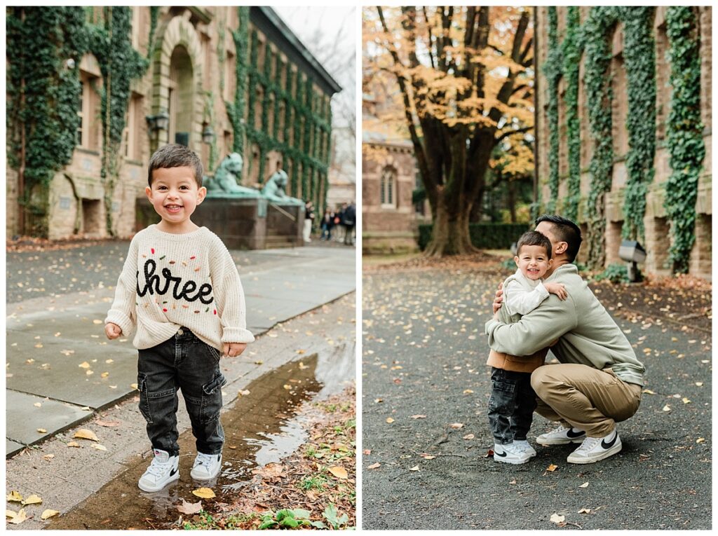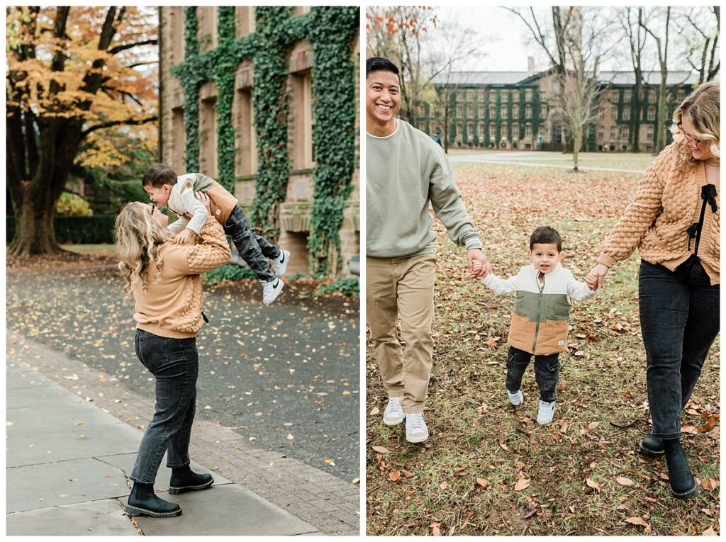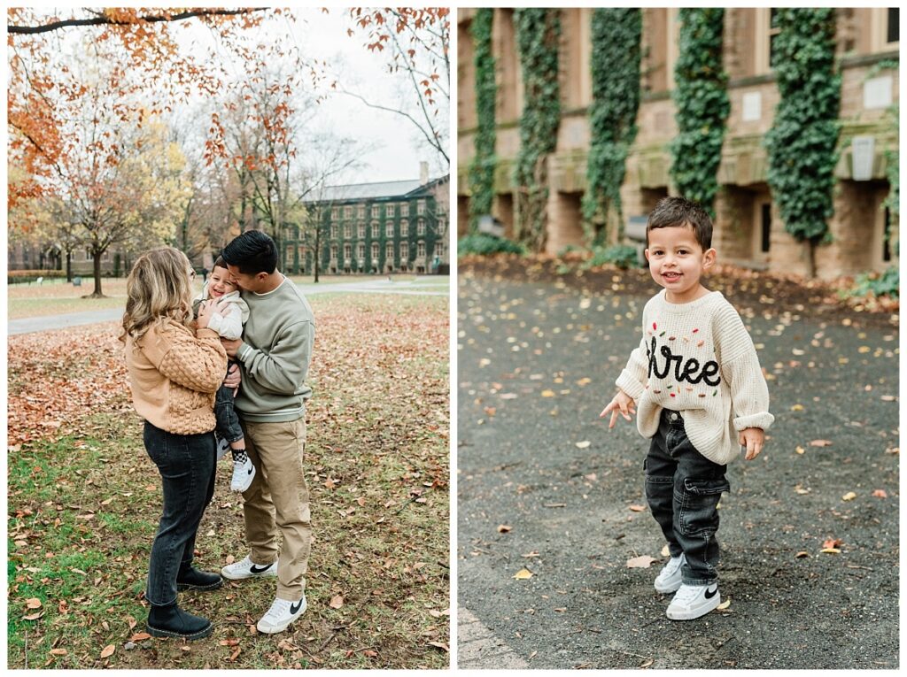 This Fall family session at Princeton University was incredibly special in a whole lot of ways. I’ve known Brittany for so many years – we went to high school together! And then several years ago I had the honor of photographing her and Lawrence’s wedding at Avensole Winery, and engagement session, which – fun fact – also took place at Princeton! Brittany and Lawrence have the most adorable, fun, and joyful son, named Atlas. It was so amazing to photograph them again in this sweet season of life with their little man turning THREE!! I had so much fun revisiting Princeton with them for a family session this fall, and just getting to reconnect and catch up!