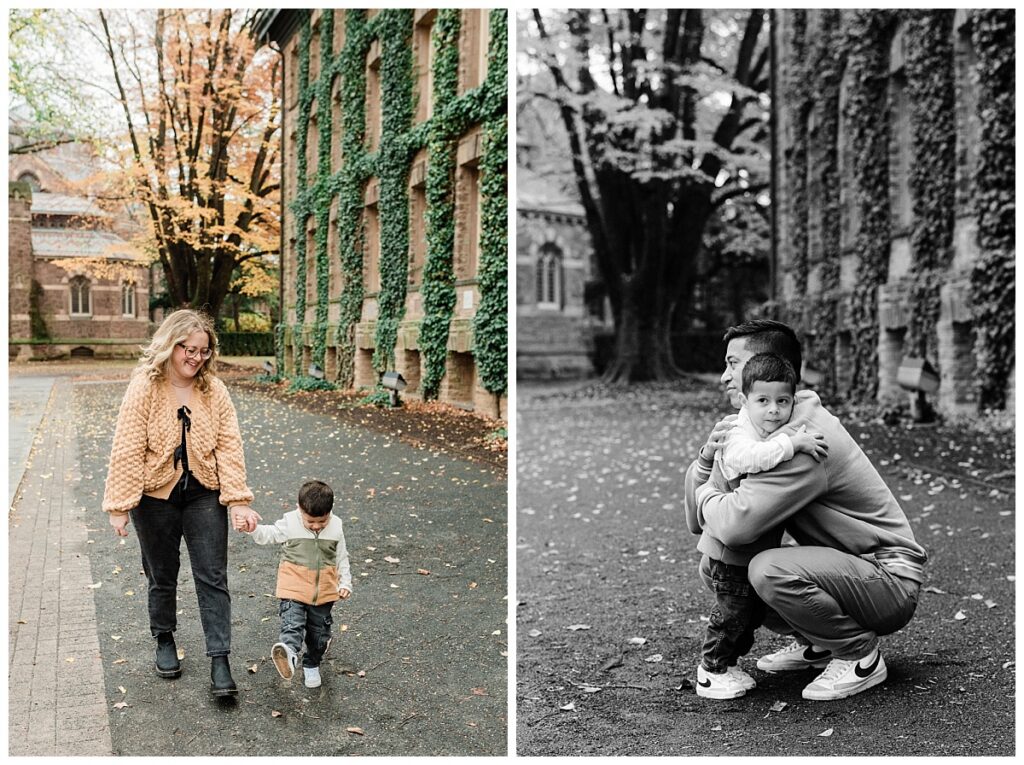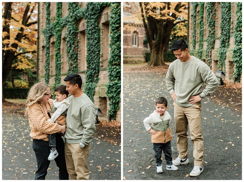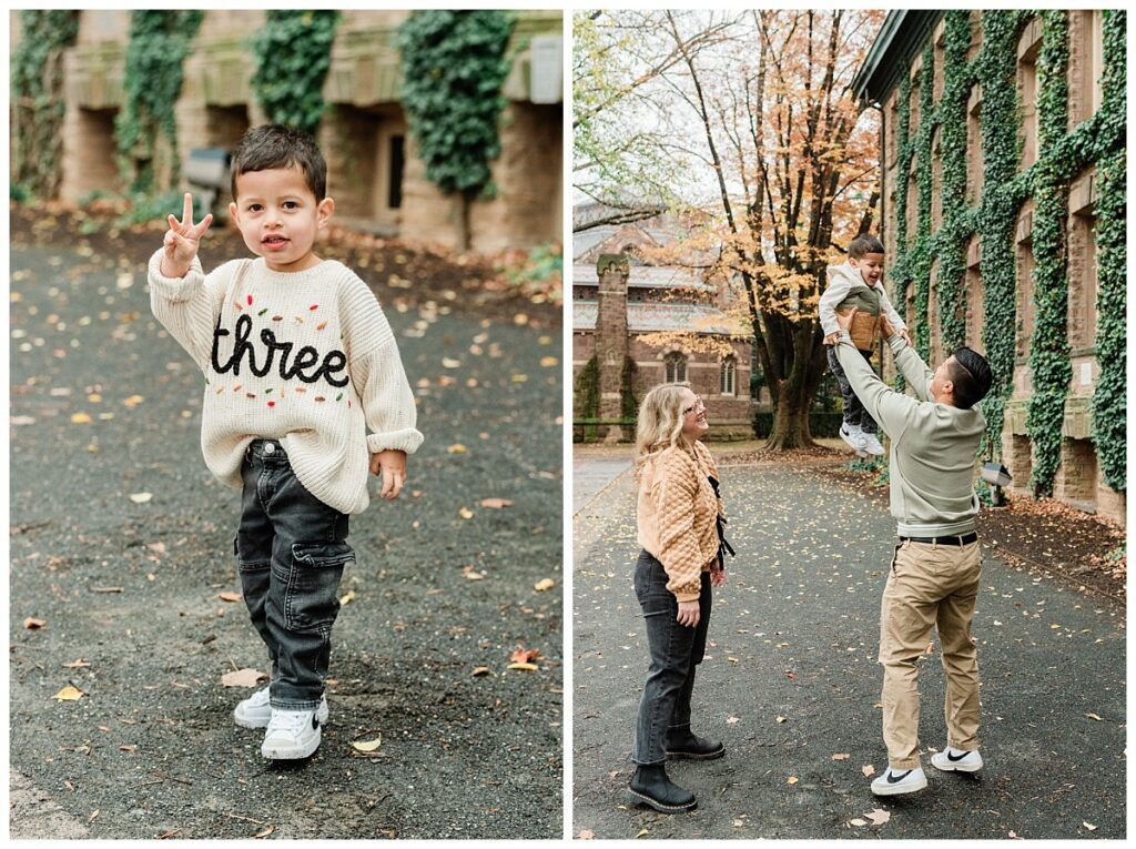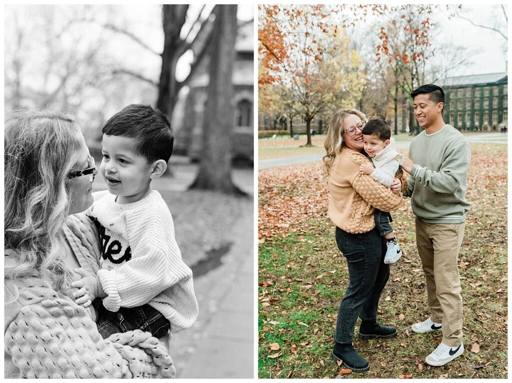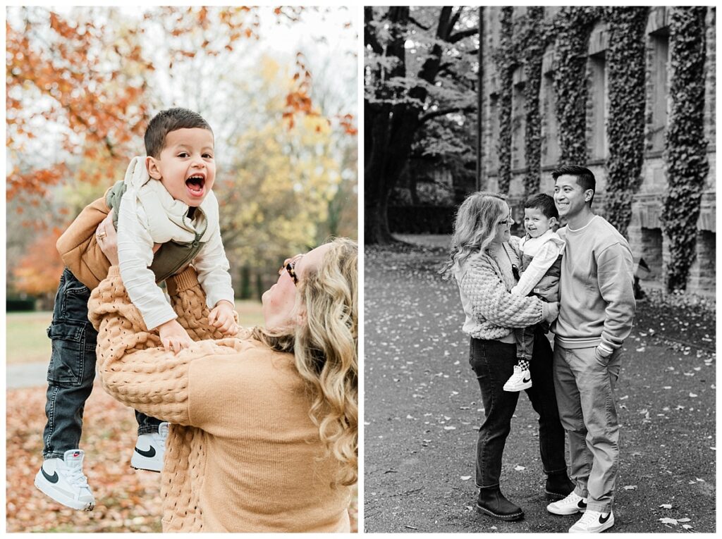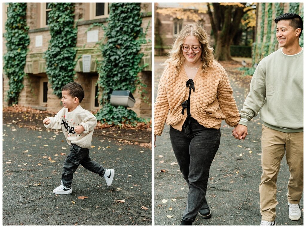 This Fall family session at Princeton University was incredibly special in a whole lot of ways. I’ve known Brittany for so many years – we went to high school together! And then several years ago I had the honor of photographing her and Lawrence’s wedding at Avensole Winery, and engagement session, which – fun fact – also took place at Princeton! Brittany and Lawrence have the most adorable, fun, and joyful son, named Atlas. It was so amazing to photograph them again in this sweet season of life with their little man turning THREE!! I had so much fun revisiting Princeton with them for a family session this fall, and just getting to reconnect and catch up!