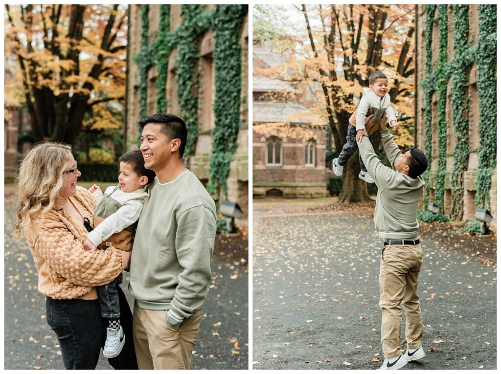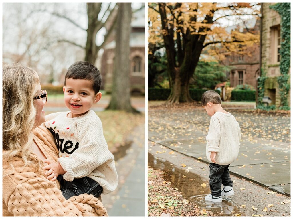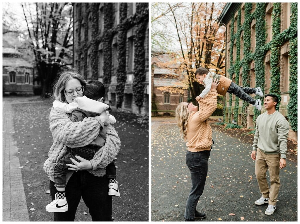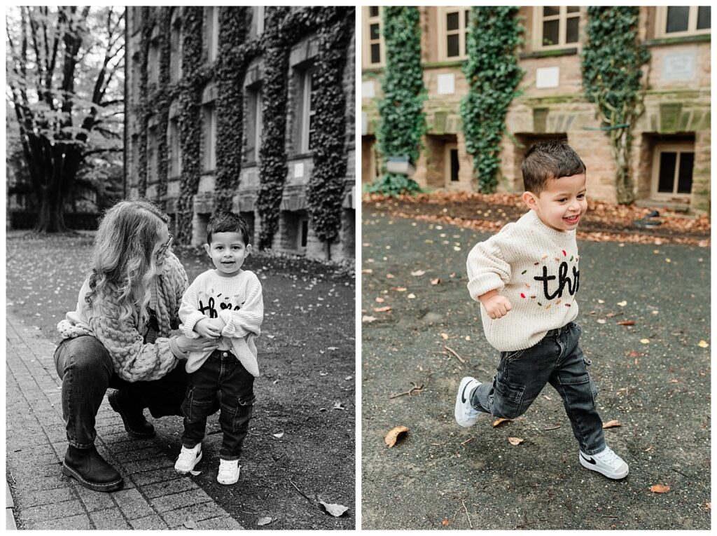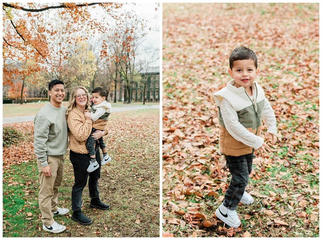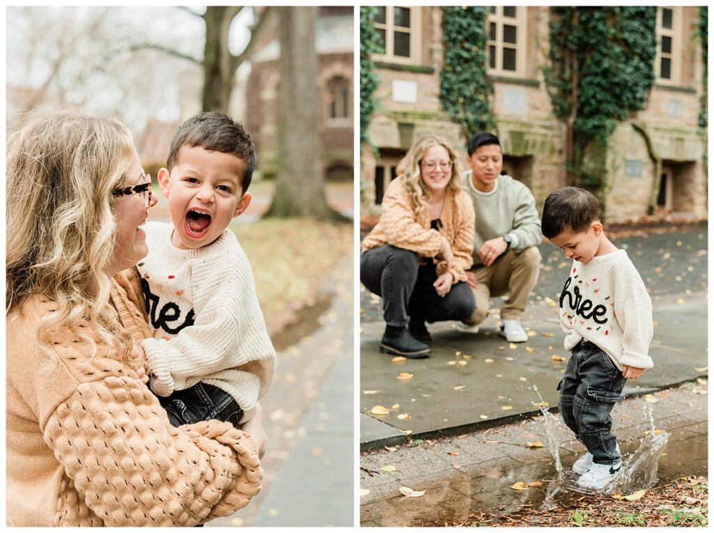 This Fall family session at Princeton University was incredibly special in a whole lot of ways. I’ve known Brittany for so many years – we went to high school together! And then several years ago I had the honor of photographing her and Lawrence’s wedding at Avensole Winery, and engagement session, which – fun fact – also took place at Princeton! Brittany and Lawrence have the most adorable, fun, and joyful son, named Atlas. It was so amazing to photograph them again in this sweet season of life with their little man turning THREE!! I had so much fun revisiting Princeton with them for a family session this fall, and just getting to reconnect and catch up!