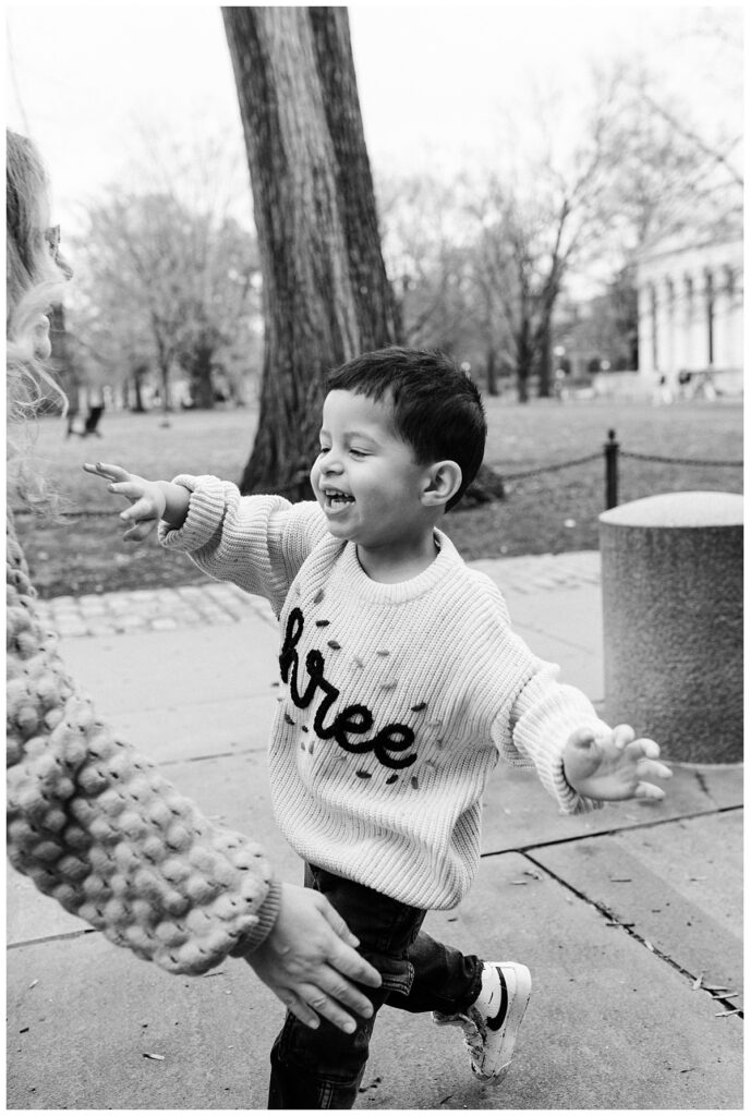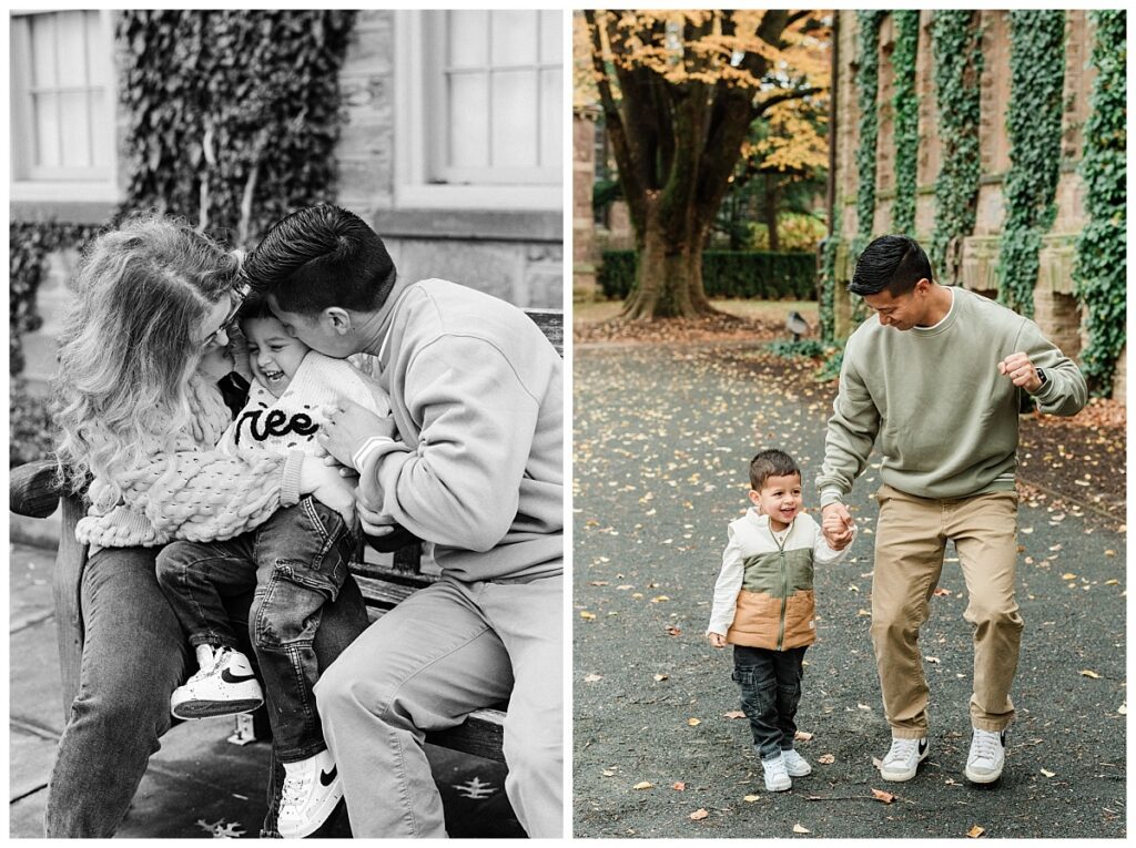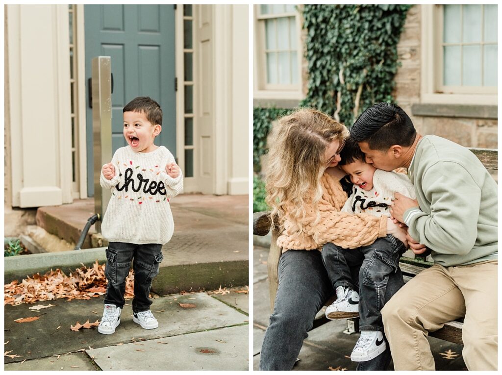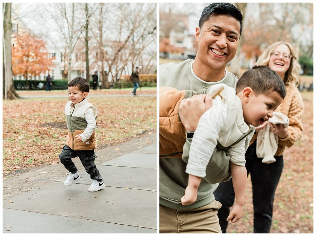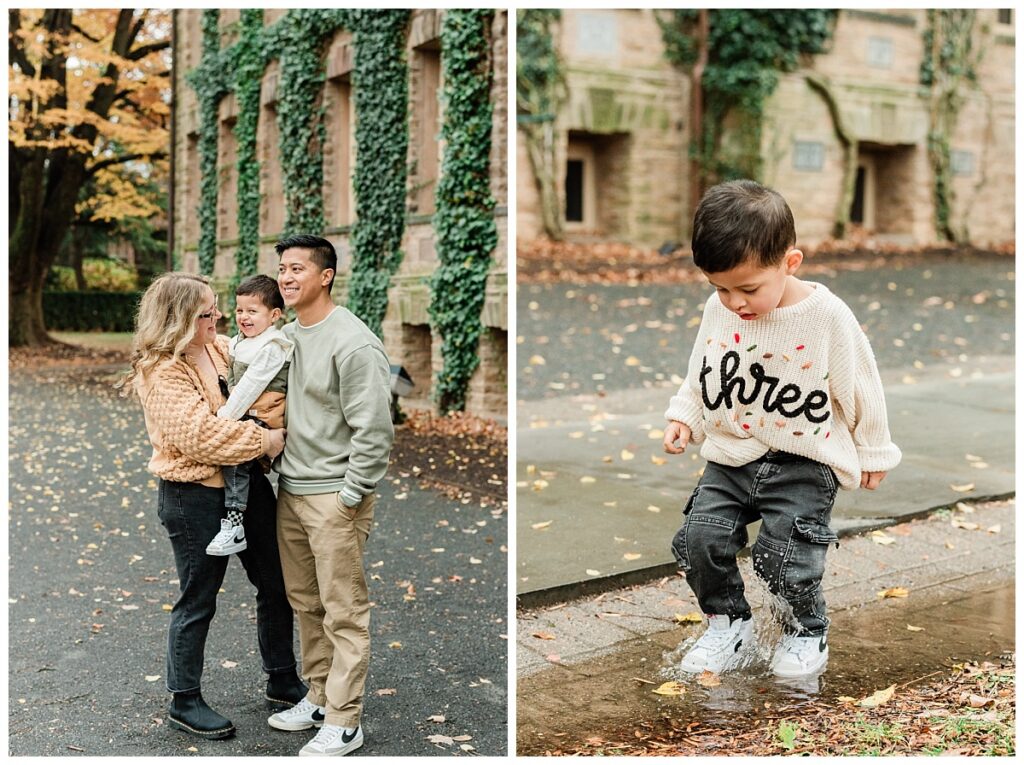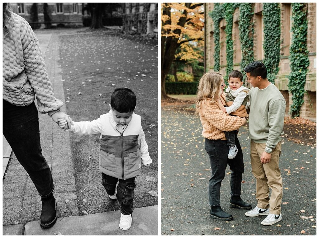 This Fall family session at Princeton University was incredibly special in a whole lot of ways. I’ve known Brittany for so many years – we went to high school together! And then several years ago I had the honor of photographing her and Lawrence’s wedding at Avensole Winery, and engagement session, which – fun fact – also took place at Princeton! Brittany and Lawrence have the most adorable, fun, and joyful son, named Atlas. It was so amazing to photograph them again in this sweet season of life with their little man turning THREE!! I had so much fun revisiting Princeton with them for a family session this fall, and just getting to reconnect and catch up!