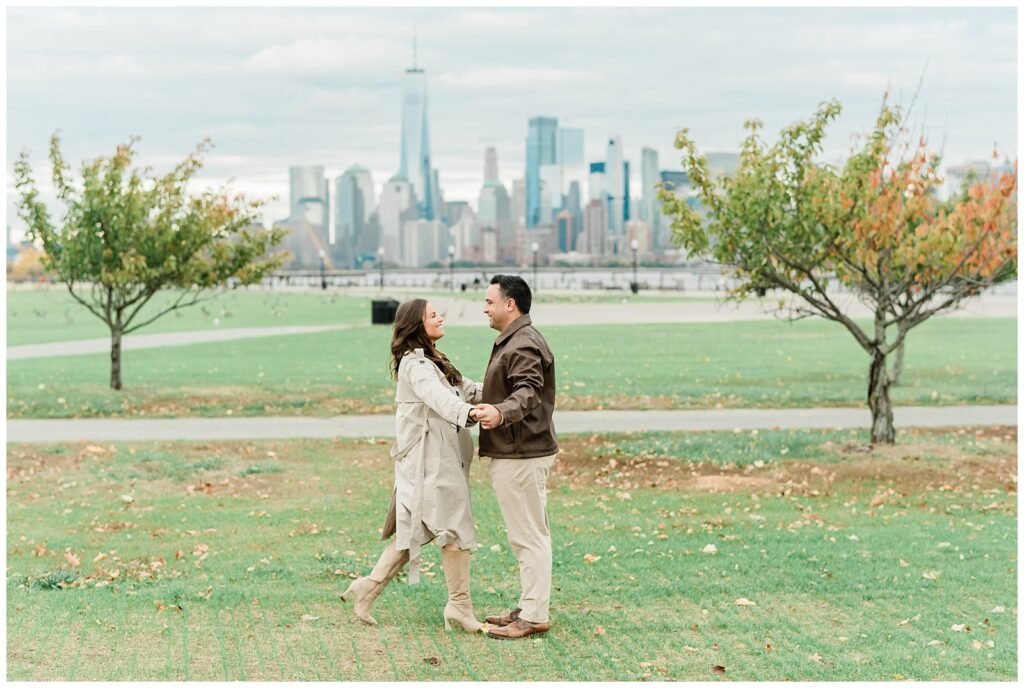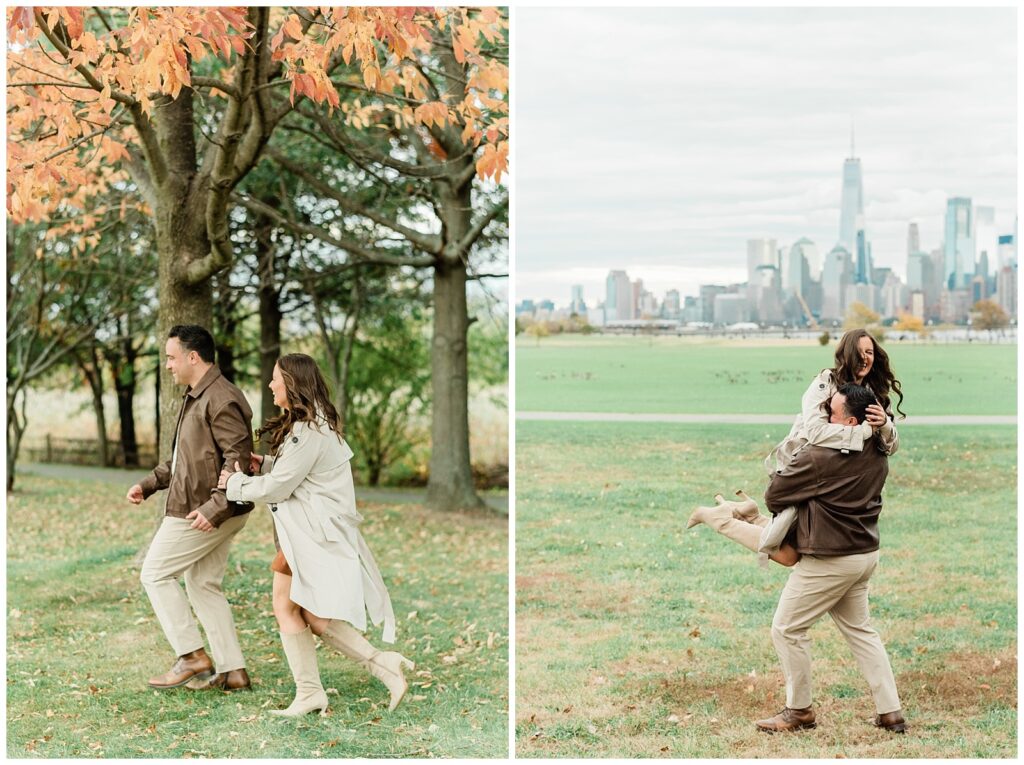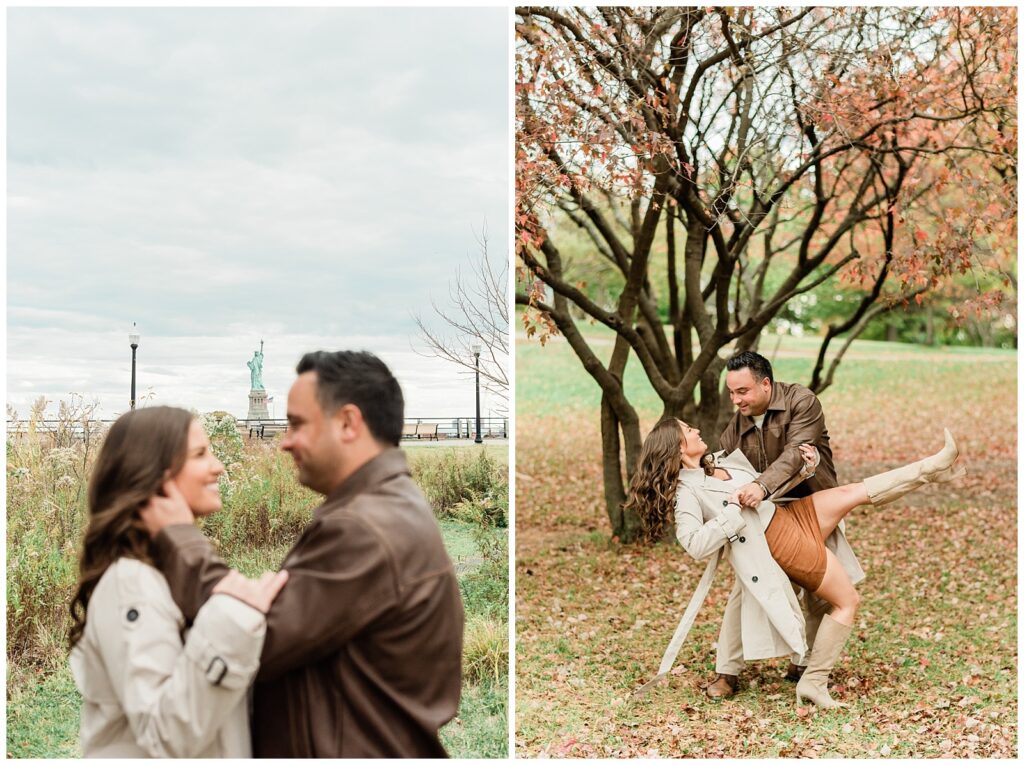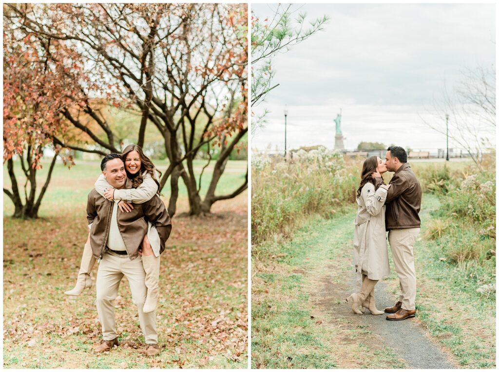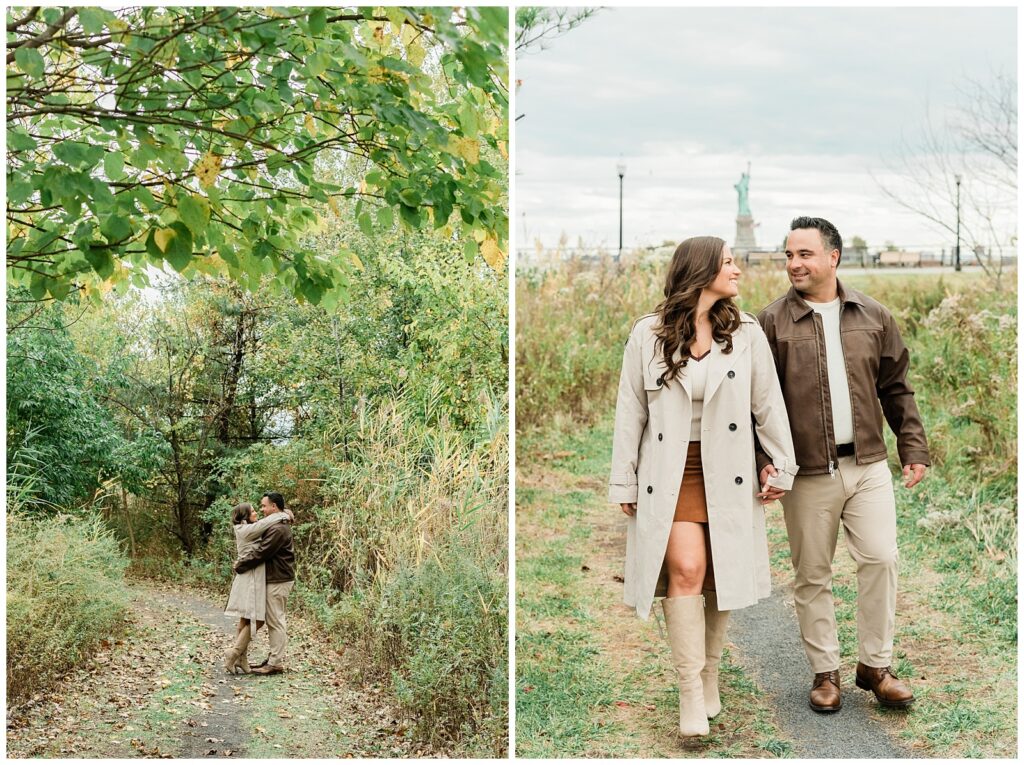 We had the most perfect day for Gianna & Tom’s Fall Liberty State Park engagement session! There was beautiful weather, soft overcast skies, colorful foliage, and a light breeze! I couldn’t dream up a better day for this session! Gianna & Tom were up for any and everything when it came to poses and ideas for photos! It was a joy to spend time photographing their love! I have so my favorite photos to share from this iconic fall engagement session! But first…a little snippet of their love story!