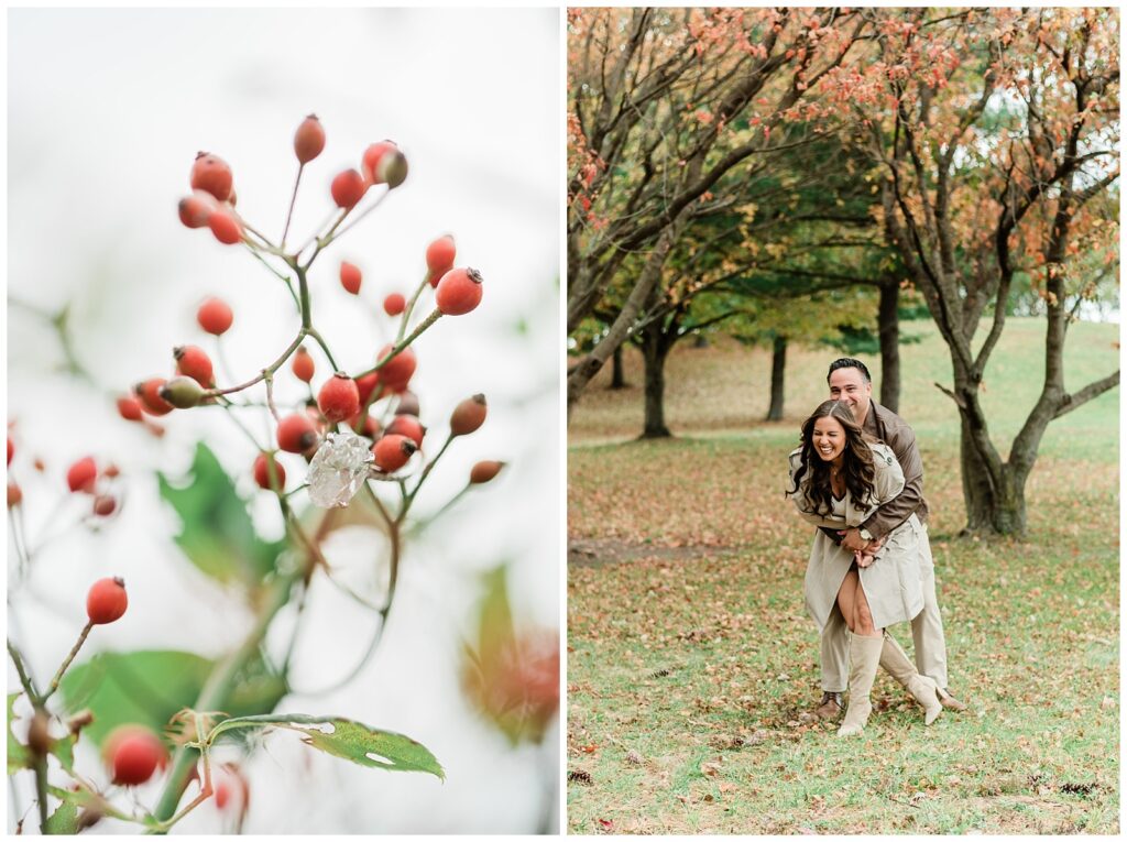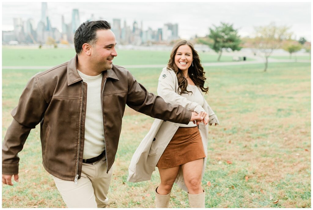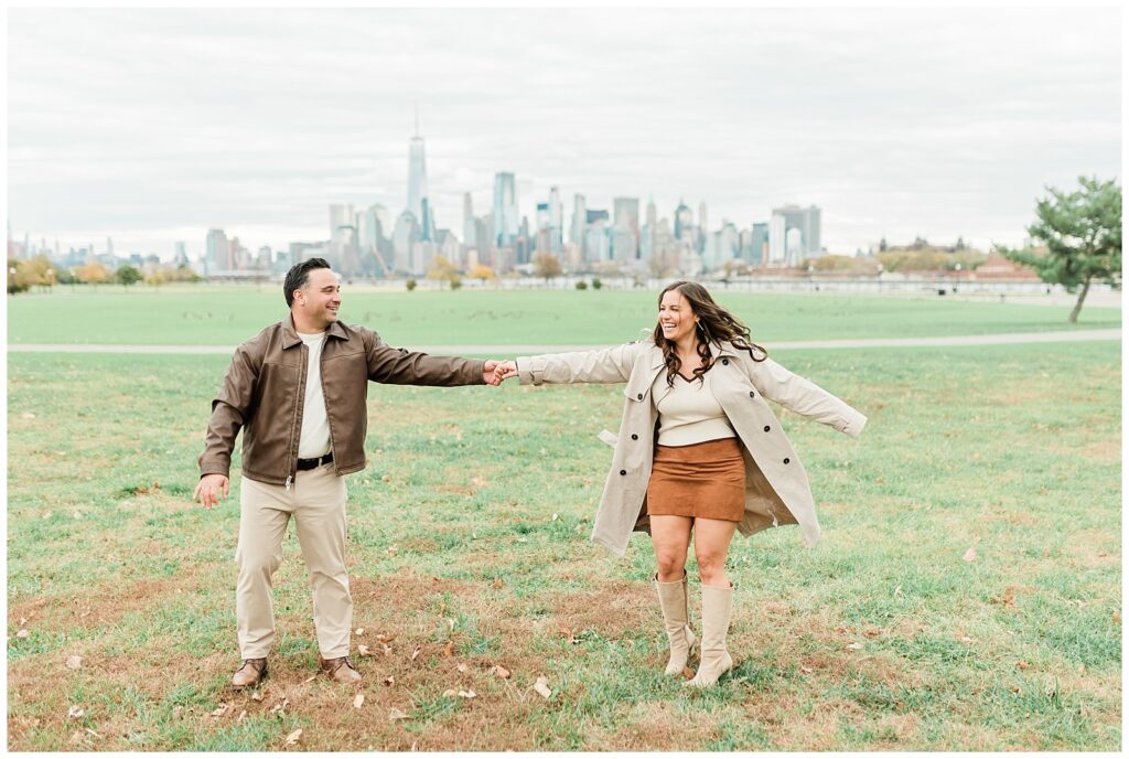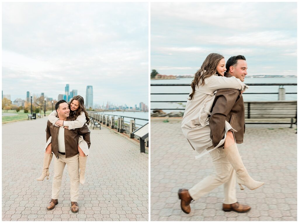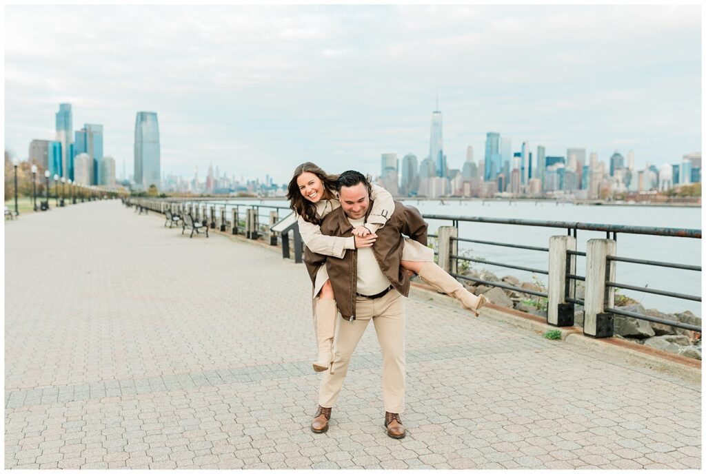 We had the most perfect day for Gianna & Tom’s Fall Liberty State Park engagement session! There was beautiful weather, soft overcast skies, colorful foliage, and a light breeze! I couldn’t dream up a better day for this session! Gianna & Tom were up for any and everything when it came to poses and ideas for photos! It was a joy to spend time photographing their love! I have so my favorite photos to share from this iconic fall engagement session! But first…a little snippet of their love story!