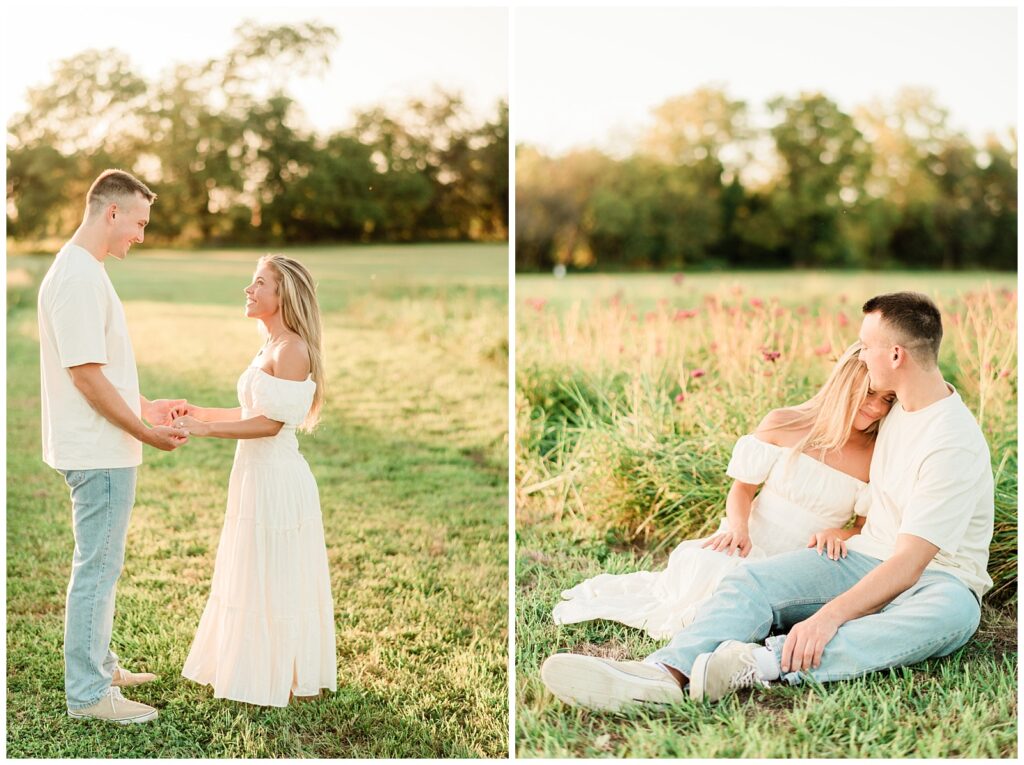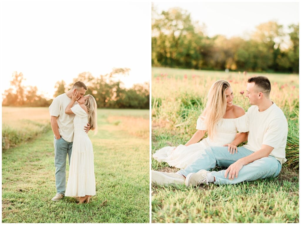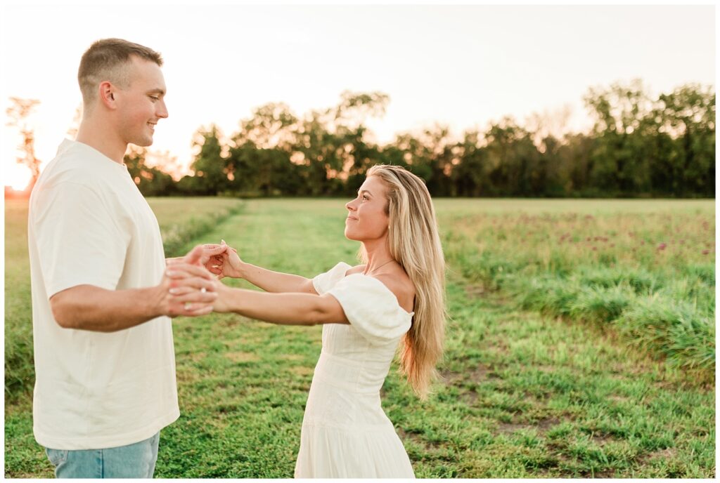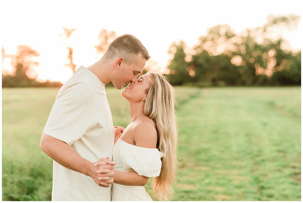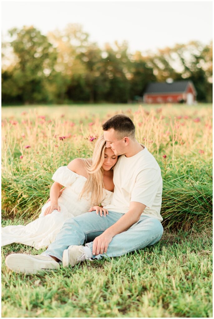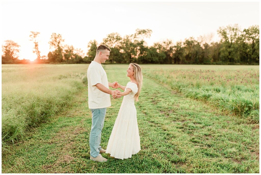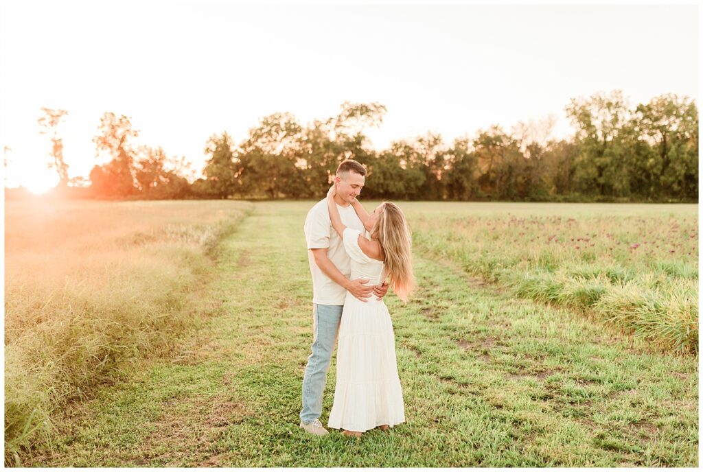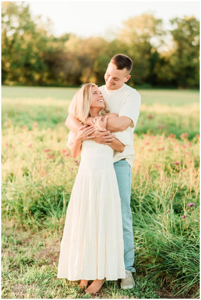 Morgan & Pat’s late summer grassy field engagement session was such a dream! A perfect golden sunset, a grassy field sprinkle with flowers, and beautiful warm weather. It’s everything I could wish for as a photographer! A family friend of Morgan’s graciously allowed us to use their property for photos, and it was incredible to have the most stunning field to use! Morgan & Pat are the sweetest couple, and were so much fun to photograph! We had the best time frolicking through the grass, and I have WAY too many favorite photos to share! But first, a little bit of their love story!