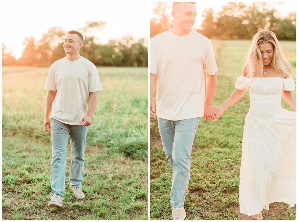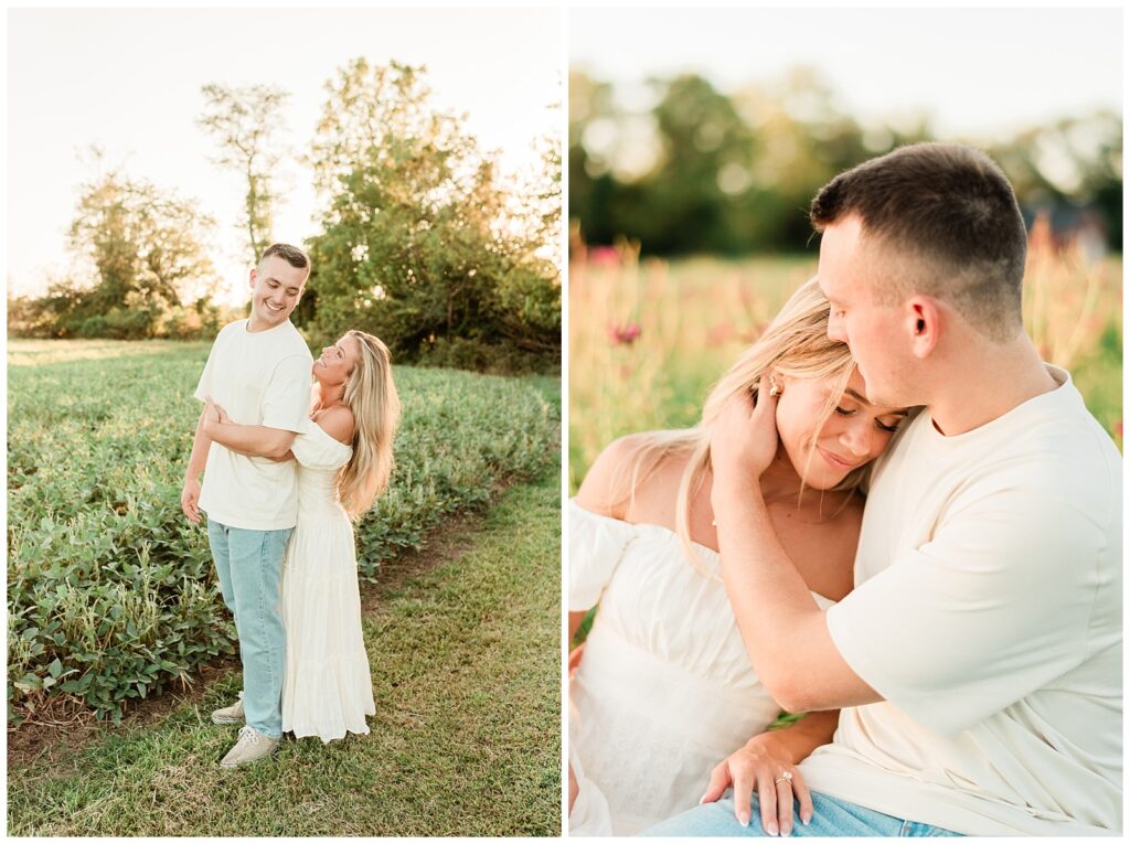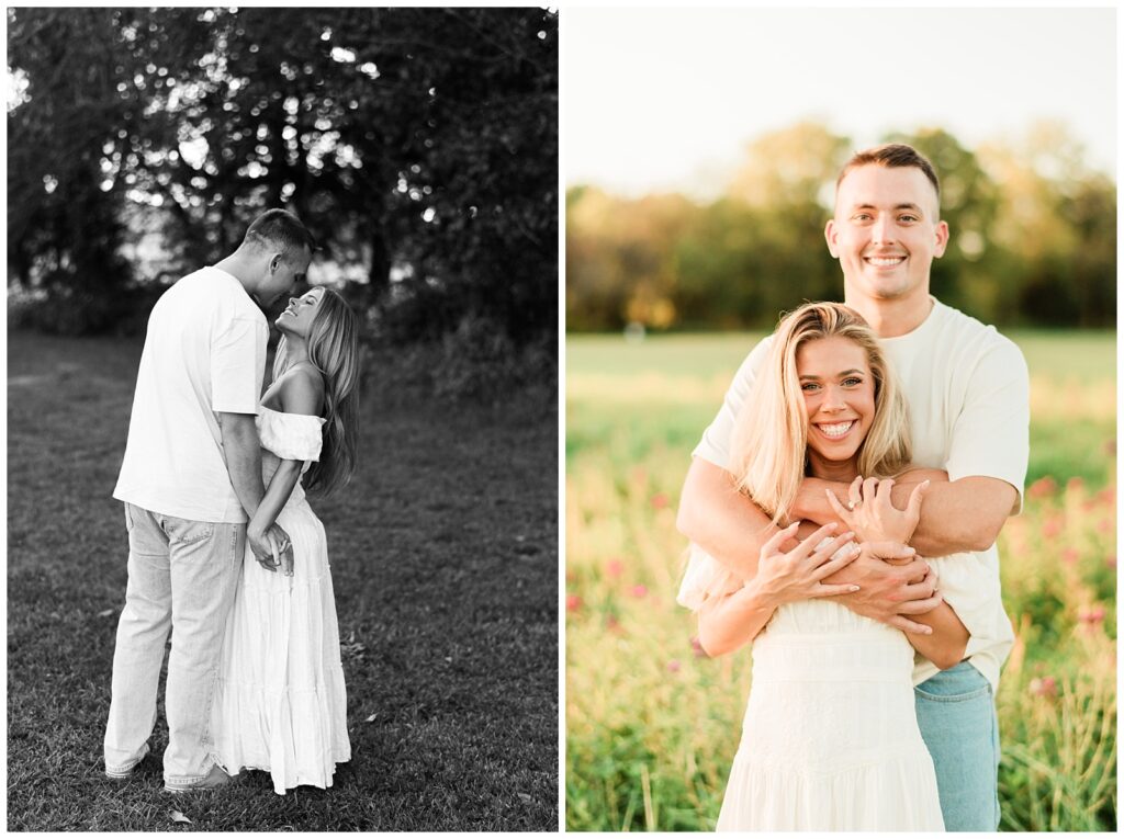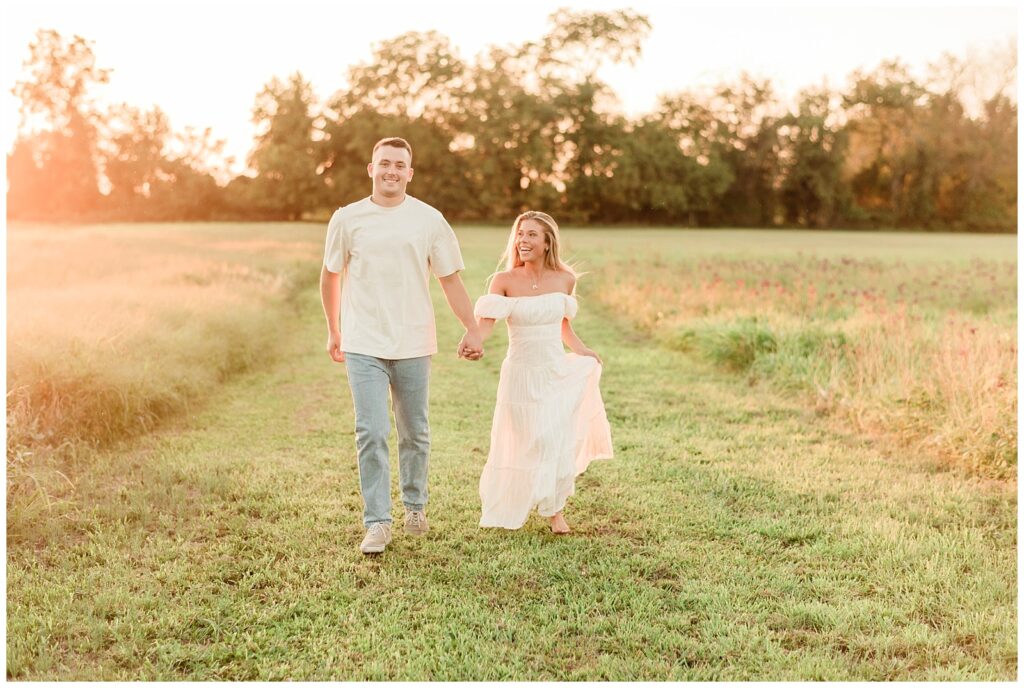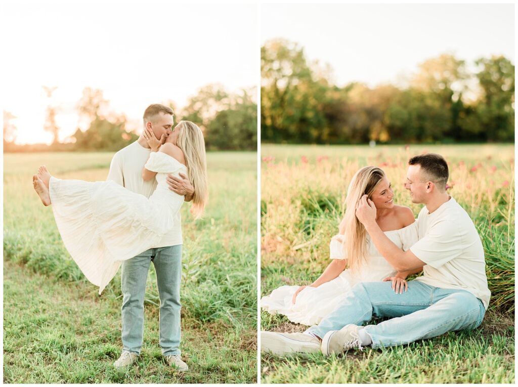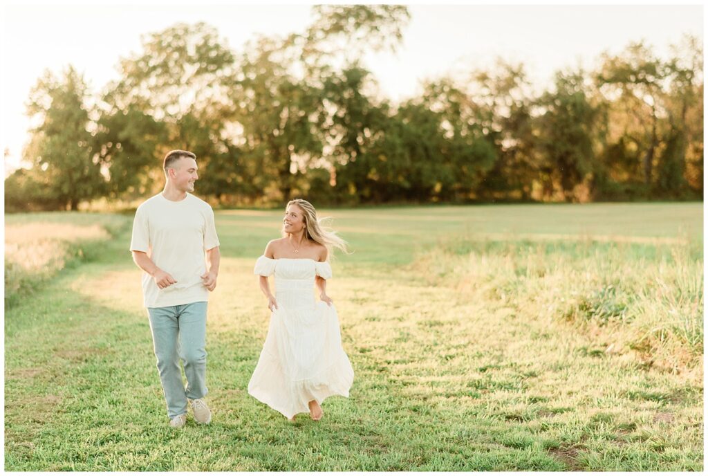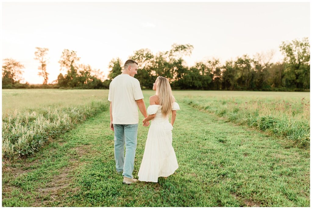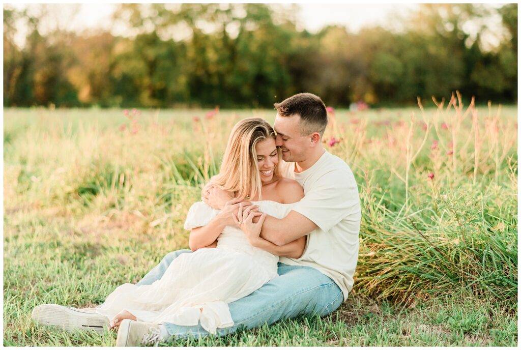 Morgan & Pat’s late summer grassy field engagement session was such a dream! A perfect golden sunset, a grassy field sprinkle with flowers, and beautiful warm weather. It’s everything I could wish for as a photographer! A family friend of Morgan’s graciously allowed us to use their property for photos, and it was incredible to have the most stunning field to use! Morgan & Pat are the sweetest couple, and were so much fun to photograph! We had the best time frolicking through the grass, and I have WAY too many favorite photos to share! But first, a little bit of their love story!