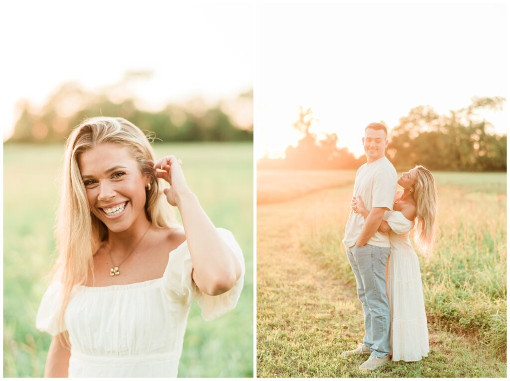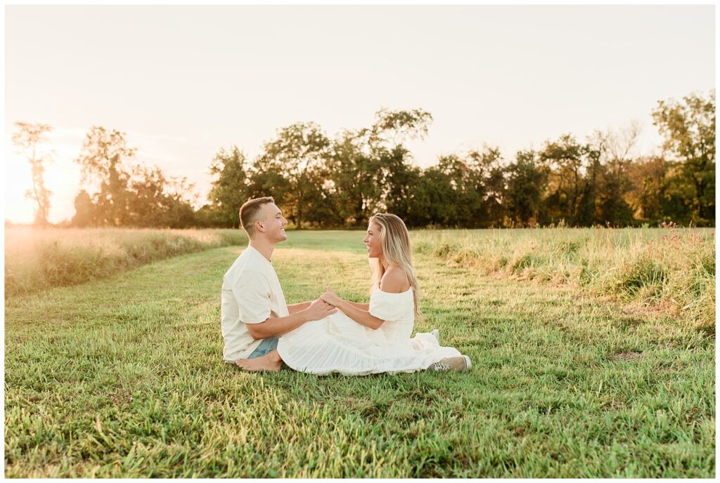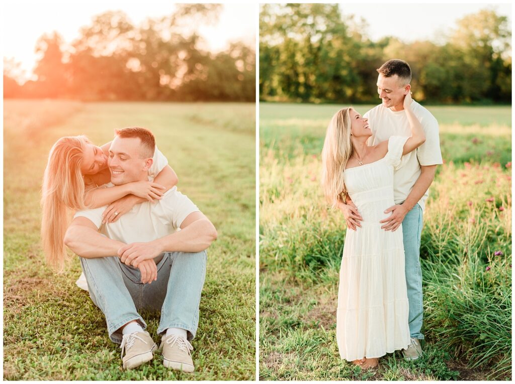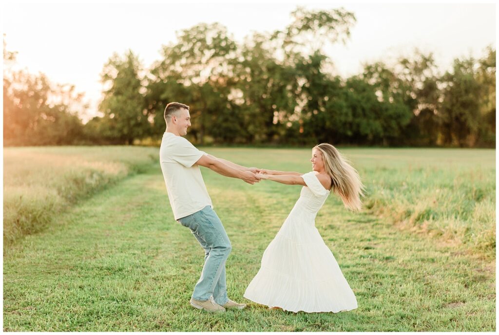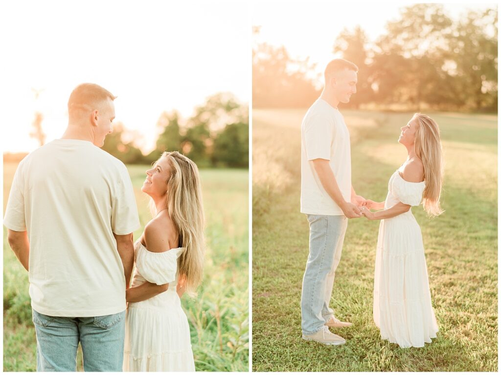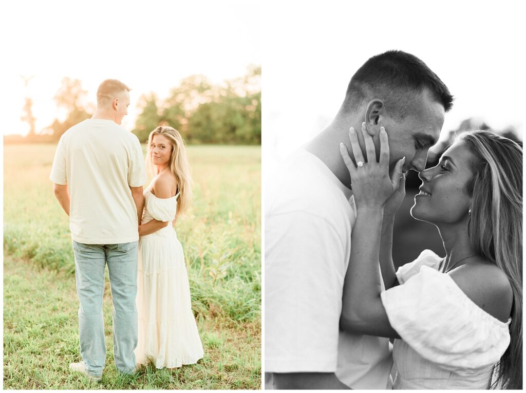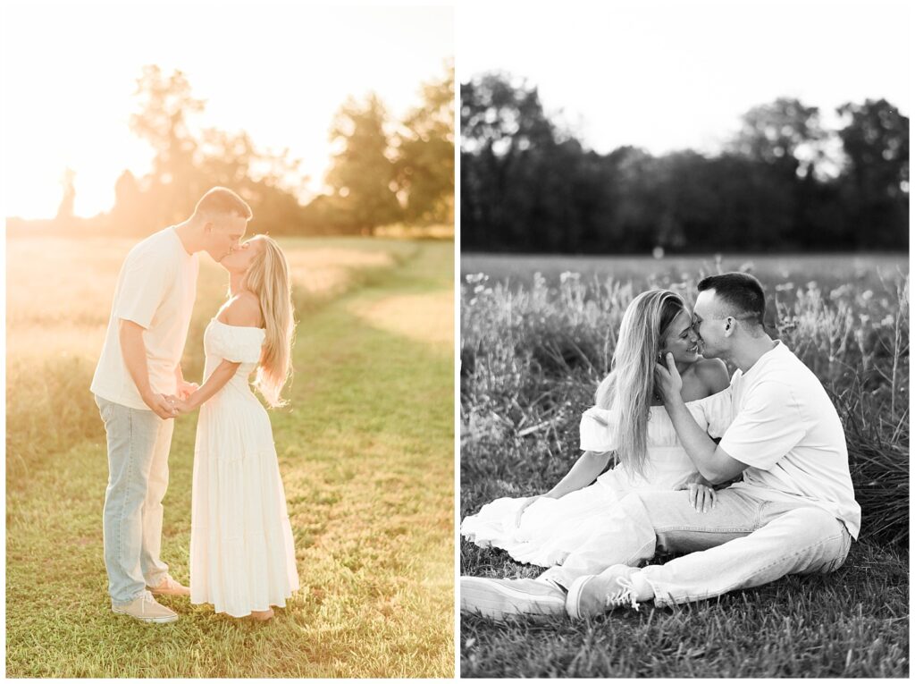 Morgan & Pat’s late summer grassy field engagement session was such a dream! A perfect golden sunset, a grassy field sprinkle with flowers, and beautiful warm weather. It’s everything I could wish for as a photographer! A family friend of Morgan’s graciously allowed us to use their property for photos, and it was incredible to have the most stunning field to use! Morgan & Pat are the sweetest couple, and were so much fun to photograph! We had the best time frolicking through the grass, and I have WAY too many favorite photos to share! But first, a little bit of their love story!