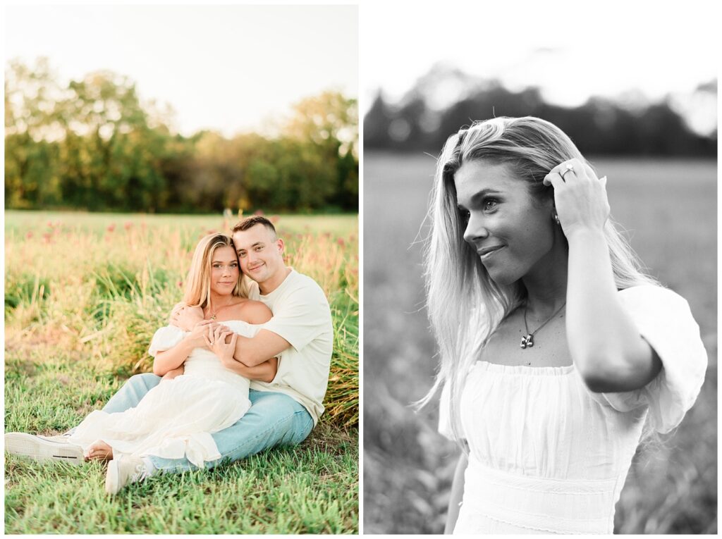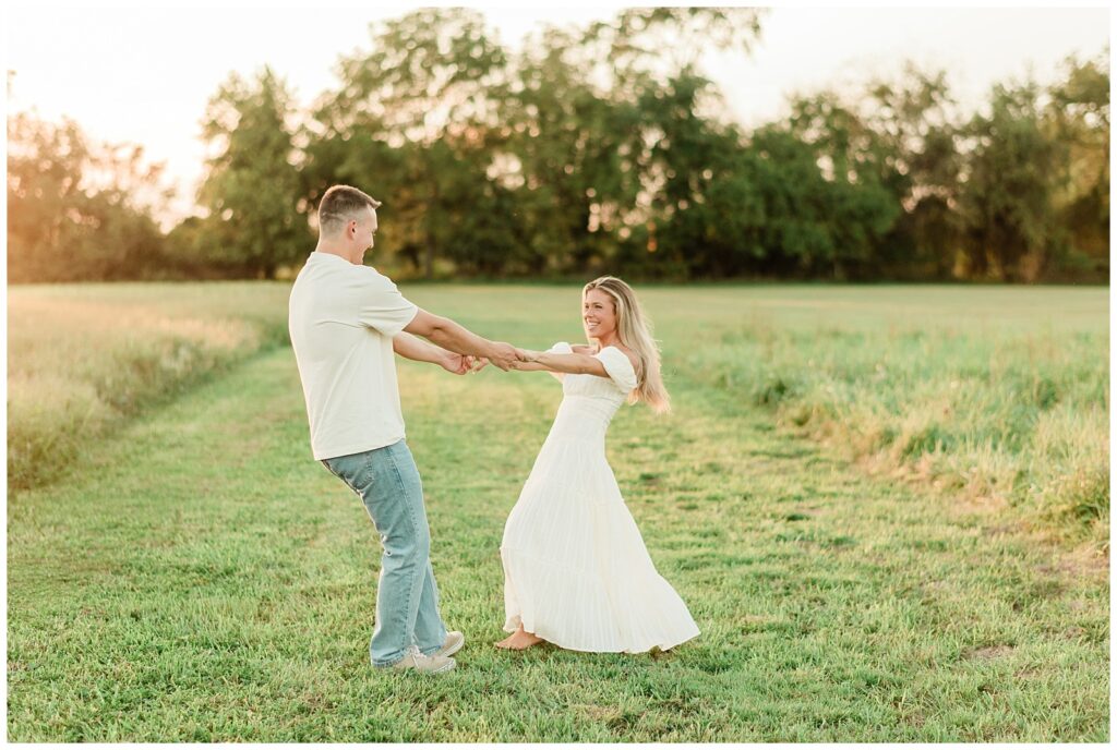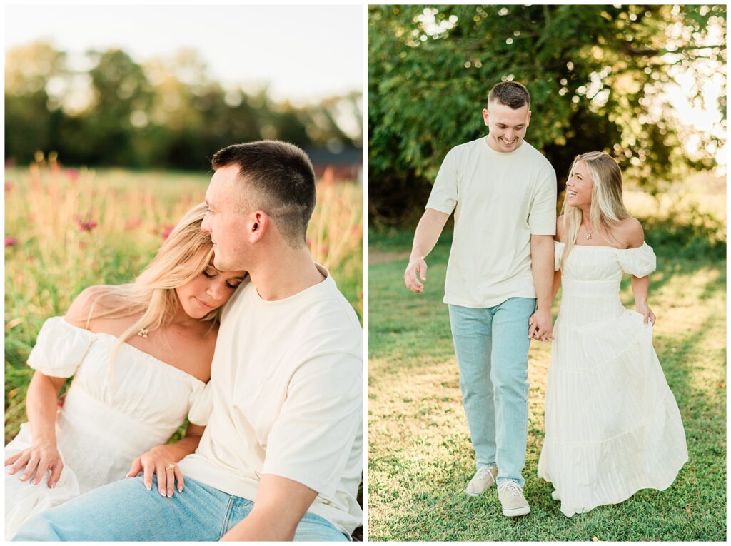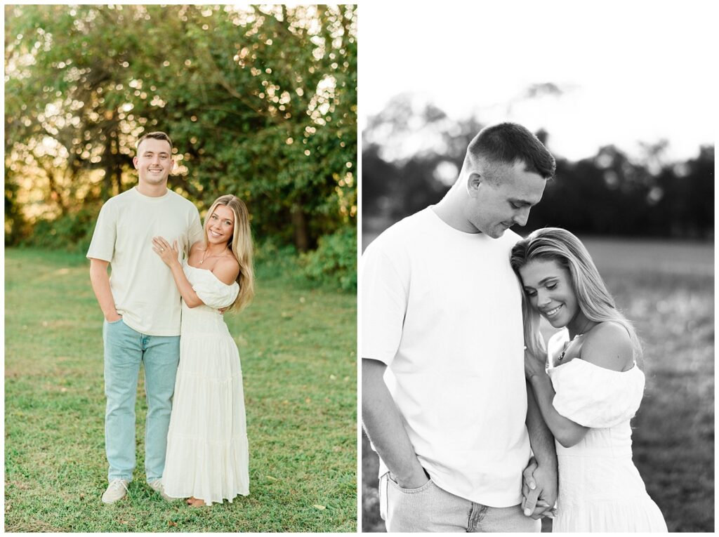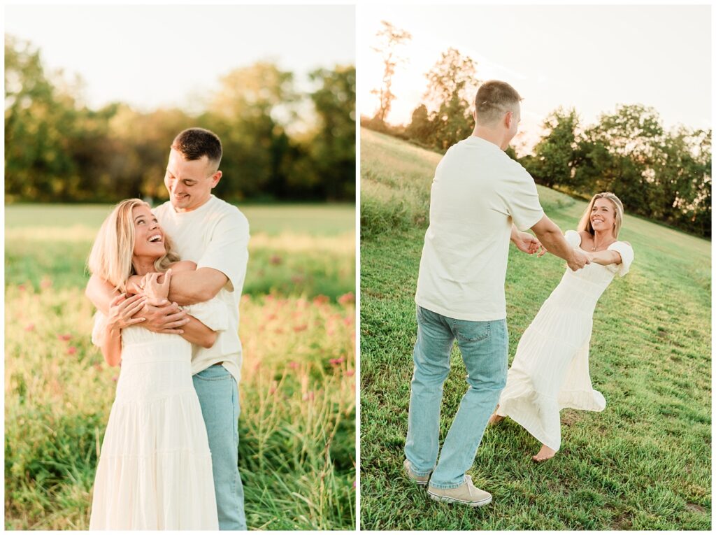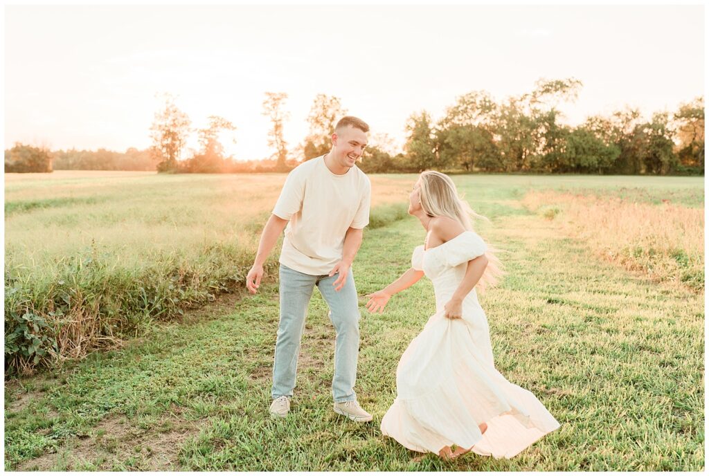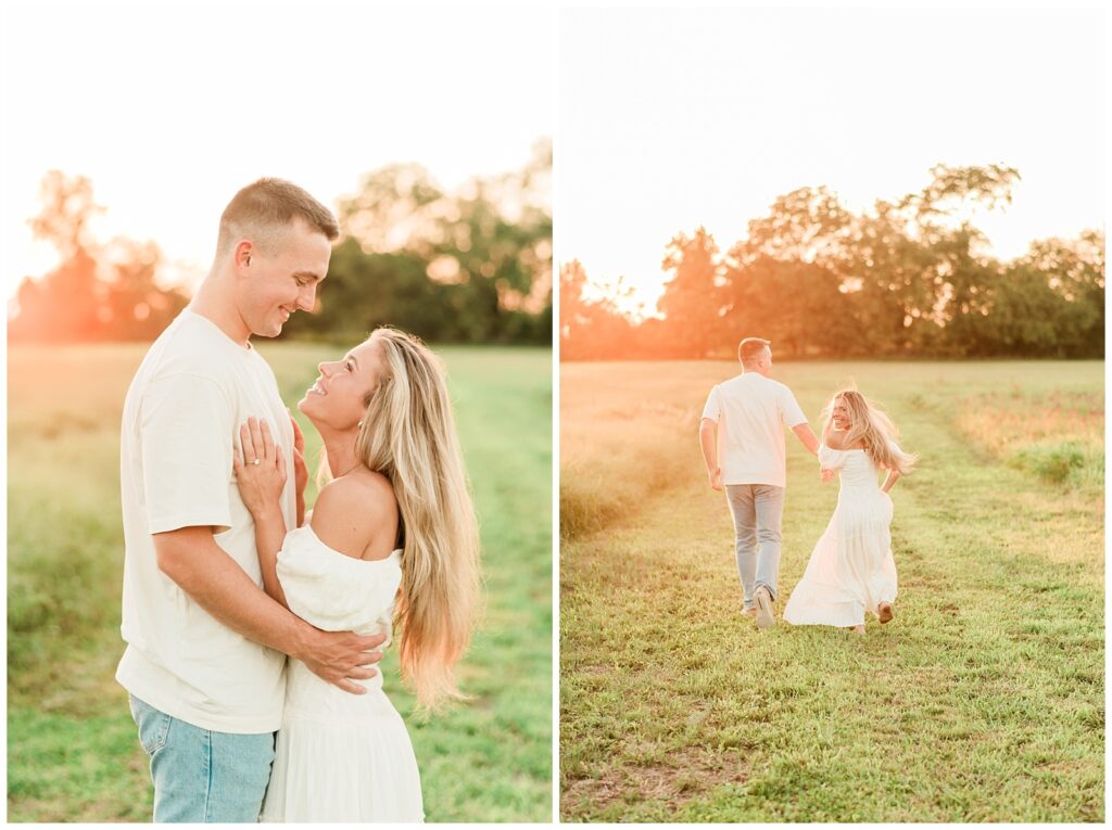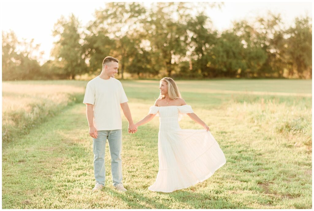 Morgan & Pat’s late summer grassy field engagement session was such a dream! A perfect golden sunset, a grassy field sprinkle with flowers, and beautiful warm weather. It’s everything I could wish for as a photographer! A family friend of Morgan’s graciously allowed us to use their property for photos, and it was incredible to have the most stunning field to use! Morgan & Pat are the sweetest couple, and were so much fun to photograph! We had the best time frolicking through the grass, and I have WAY too many favorite photos to share! But first, a little bit of their love story!