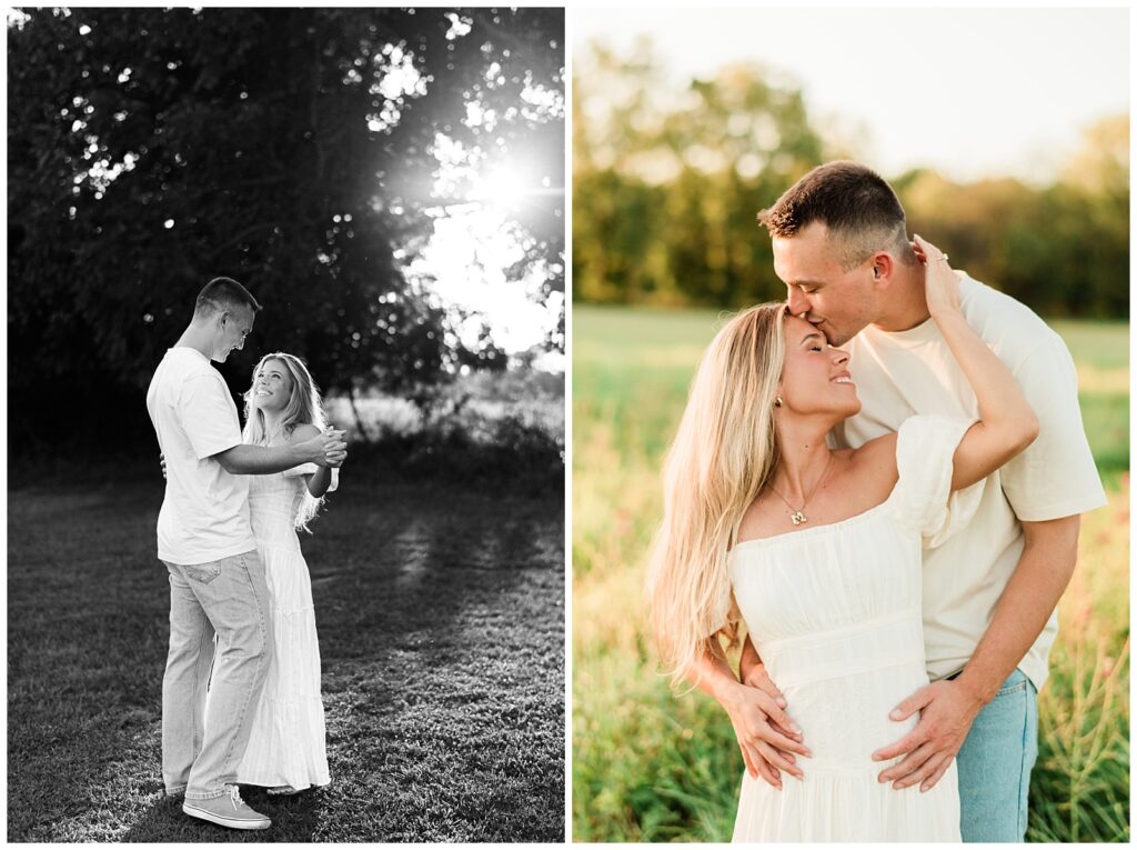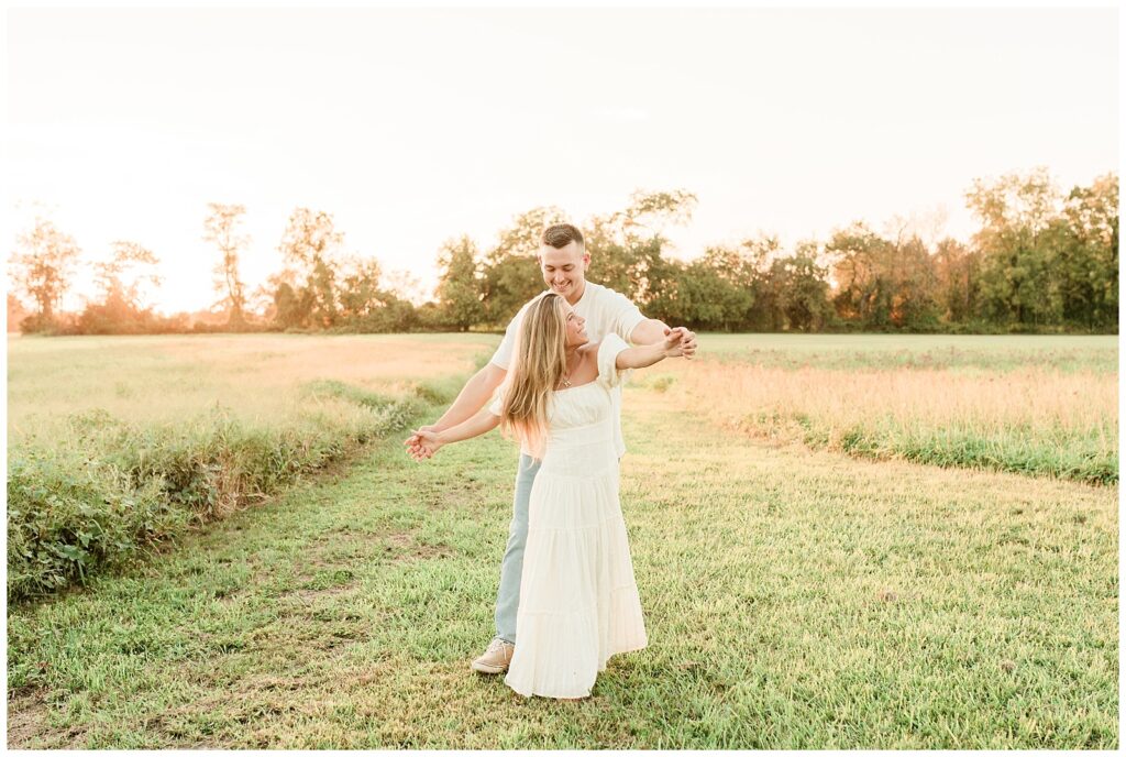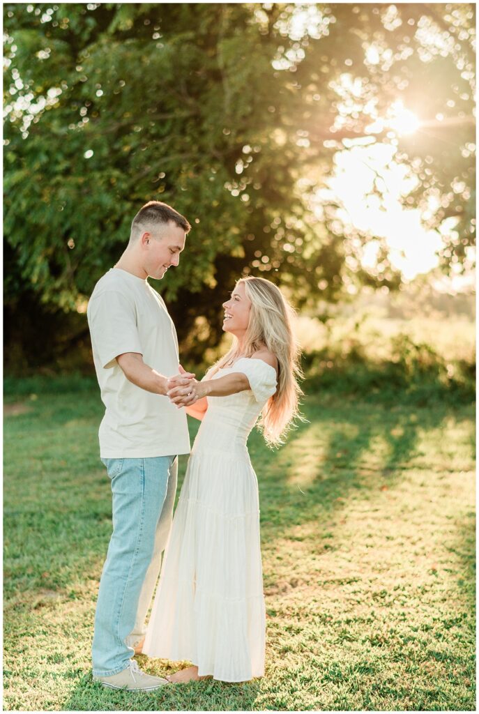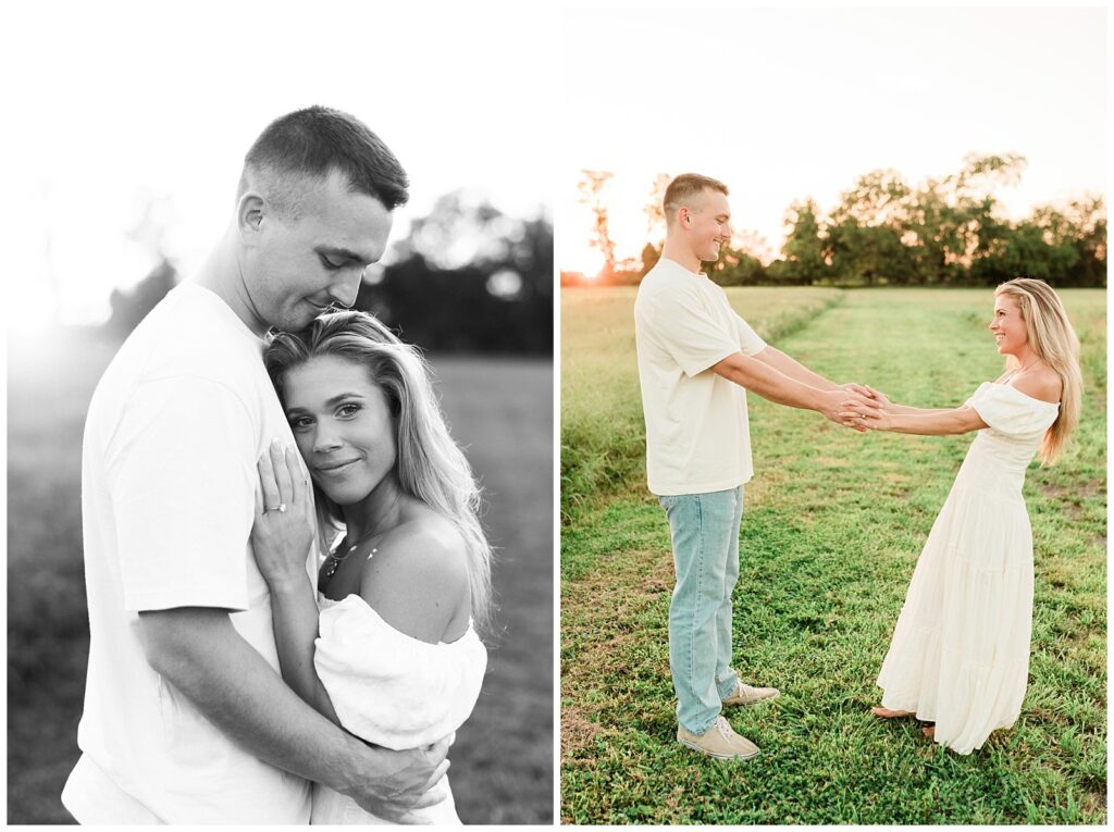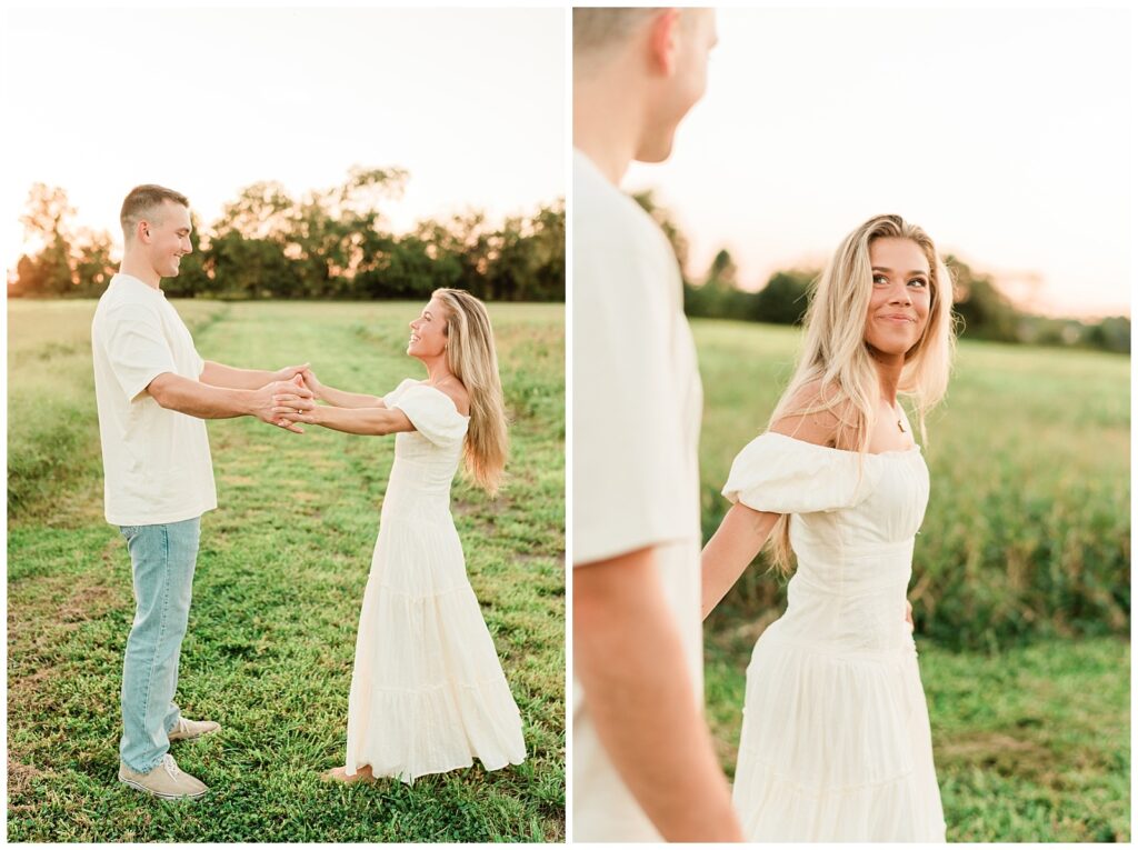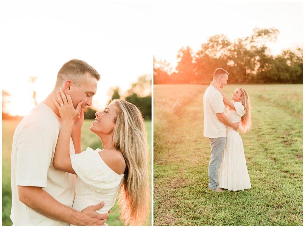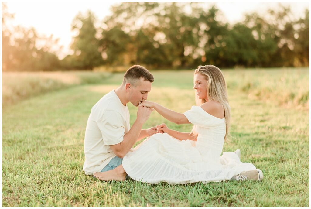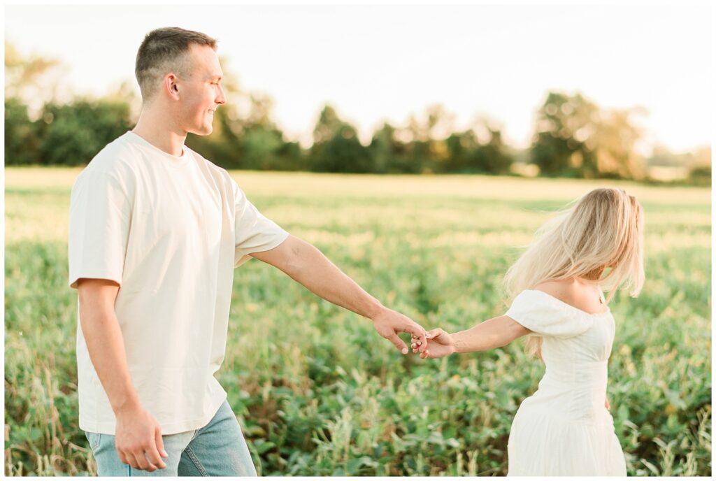 Morgan & Pat’s late summer grassy field engagement session was such a dream! A perfect golden sunset, a grassy field sprinkle with flowers, and beautiful warm weather. It’s everything I could wish for as a photographer! A family friend of Morgan’s graciously allowed us to use their property for photos, and it was incredible to have the most stunning field to use! Morgan & Pat are the sweetest couple, and were so much fun to photograph! We had the best time frolicking through the grass, and I have WAY too many favorite photos to share! But first, a little bit of their love story!