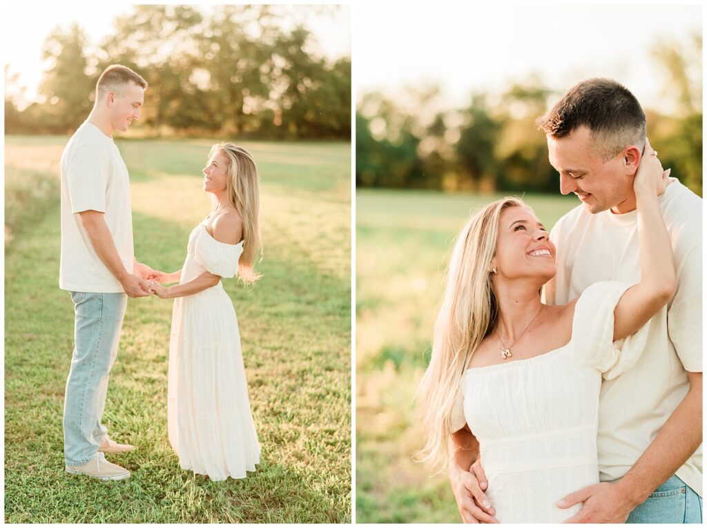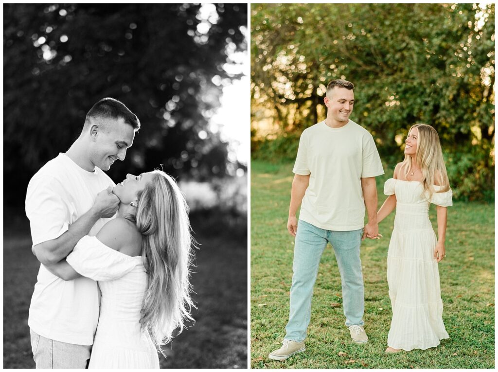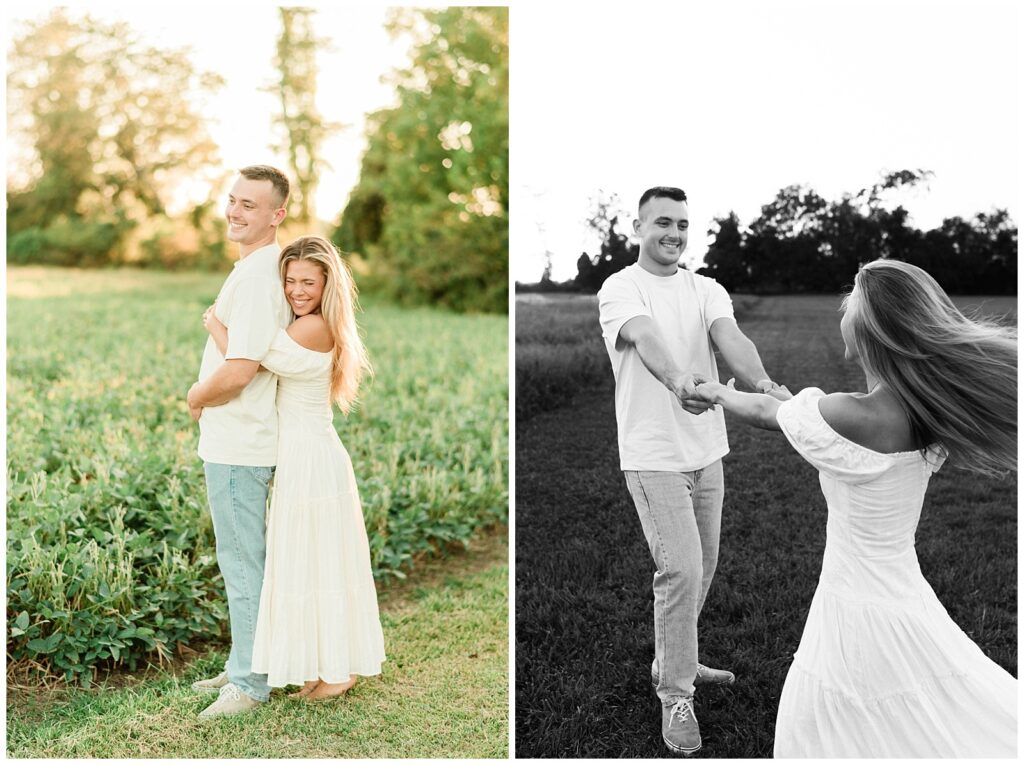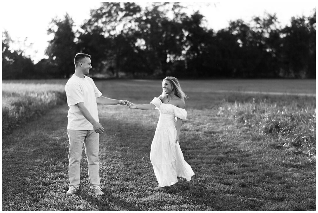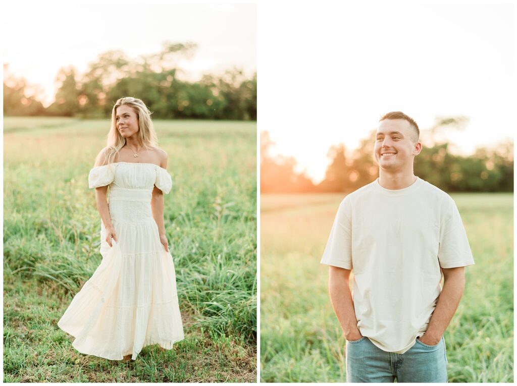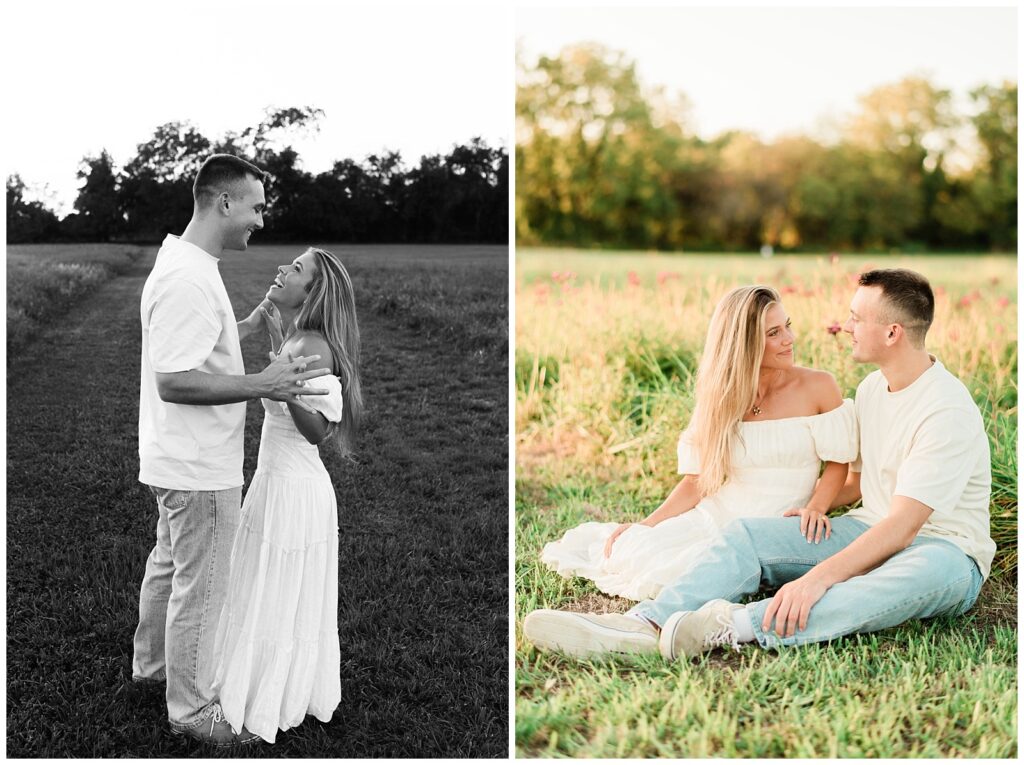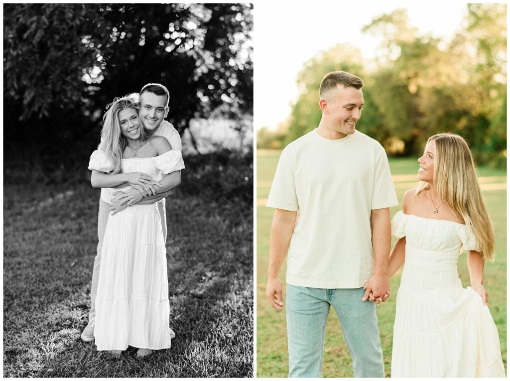 Morgan & Pat’s late summer grassy field engagement session was such a dream! A perfect golden sunset, a grassy field sprinkle with flowers, and beautiful warm weather. It’s everything I could wish for as a photographer! A family friend of Morgan’s graciously allowed us to use their property for photos, and it was incredible to have the most stunning field to use! Morgan & Pat are the sweetest couple, and were so much fun to photograph! We had the best time frolicking through the grass, and I have WAY too many favorite photos to share! But first, a little bit of their love story!