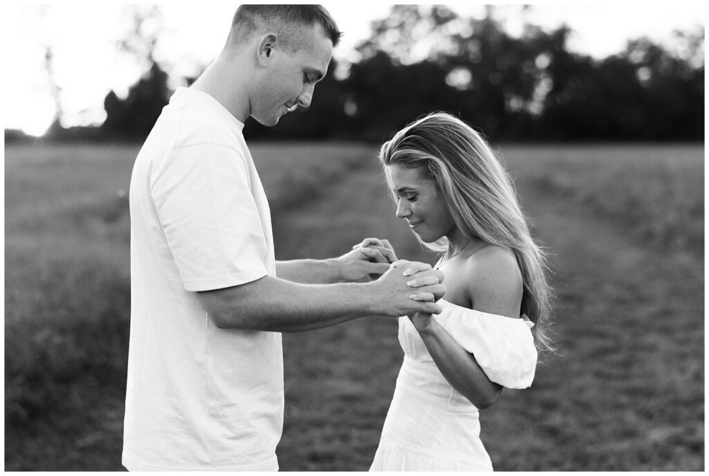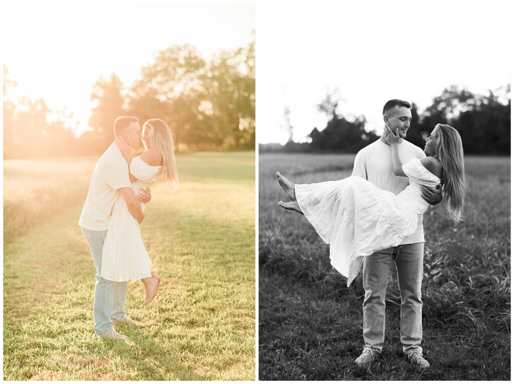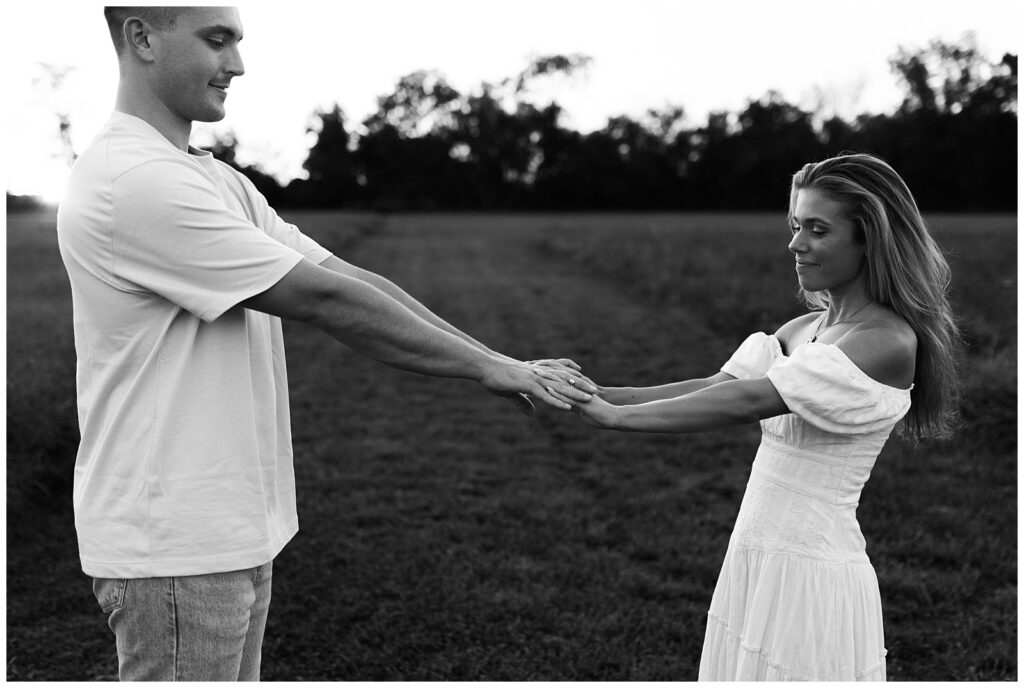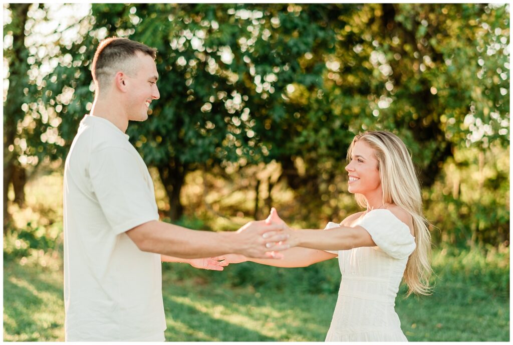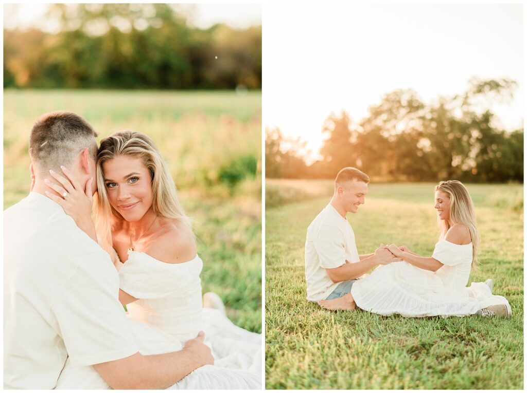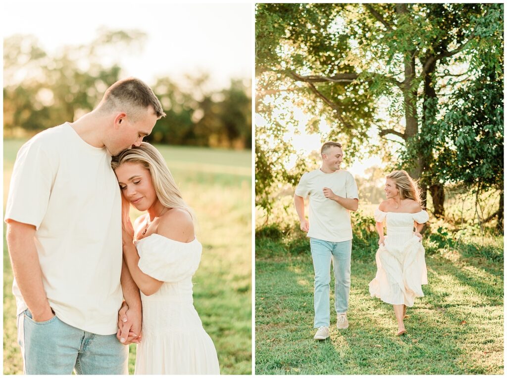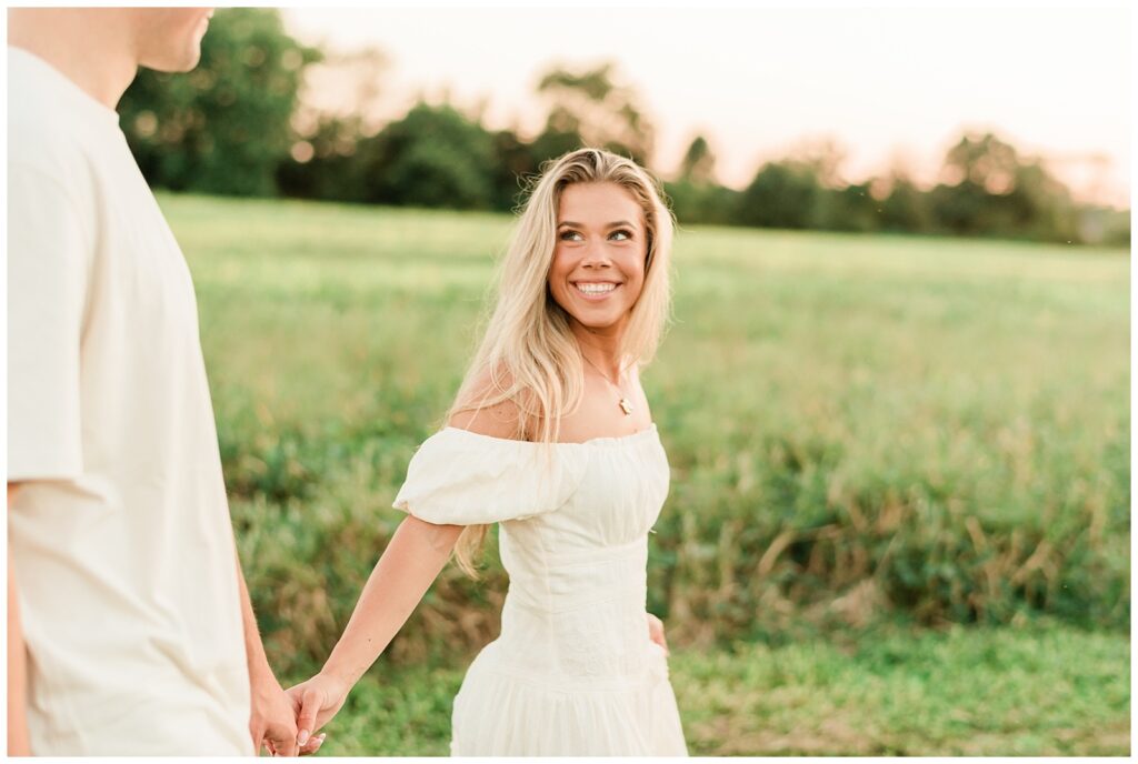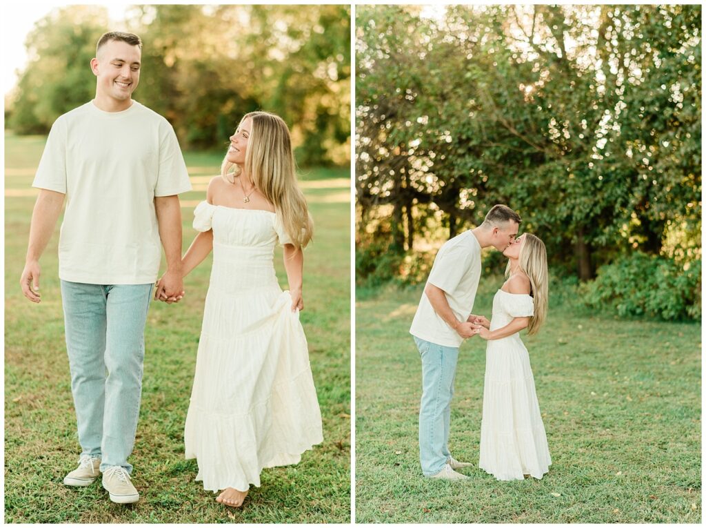 Morgan & Pat’s late summer grassy field engagement session was such a dream! A perfect golden sunset, a grassy field sprinkle with flowers, and beautiful warm weather. It’s everything I could wish for as a photographer! A family friend of Morgan’s graciously allowed us to use their property for photos, and it was incredible to have the most stunning field to use! Morgan & Pat are the sweetest couple, and were so much fun to photograph! We had the best time frolicking through the grass, and I have WAY too many favorite photos to share! But first, a little bit of their love story!