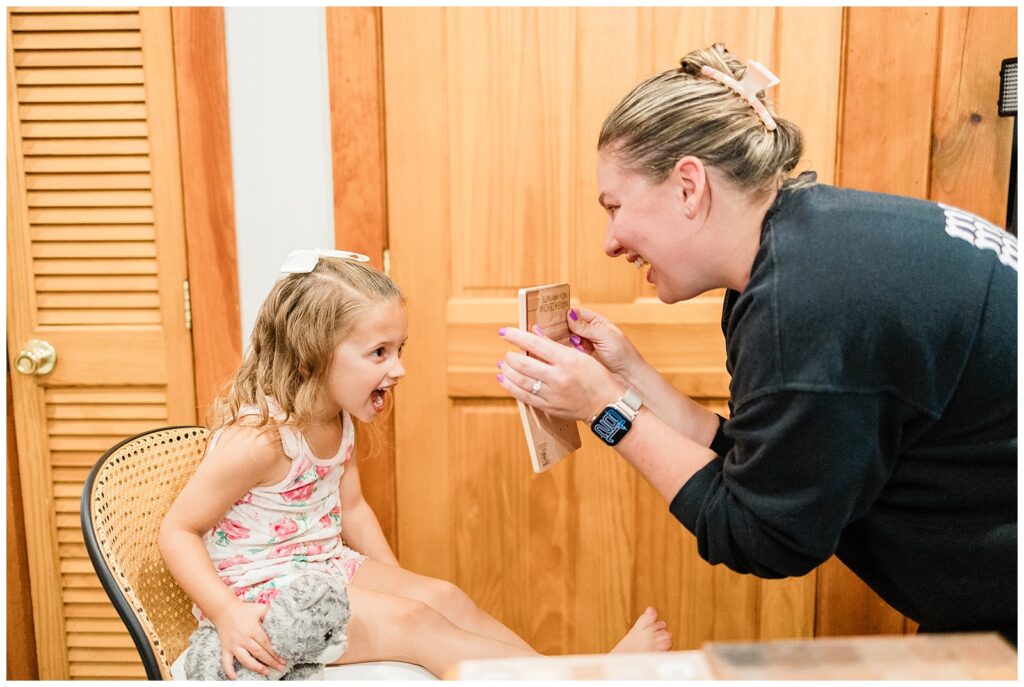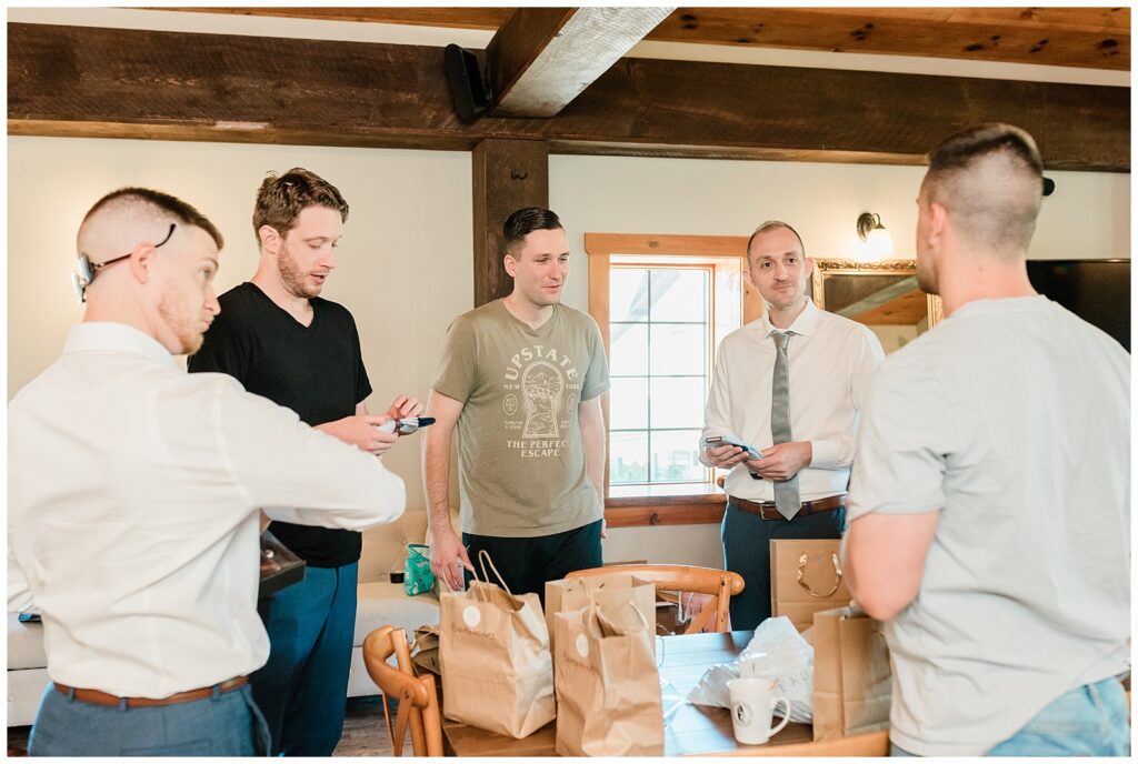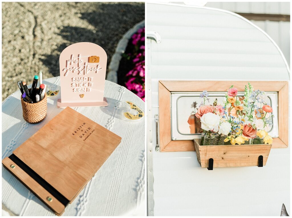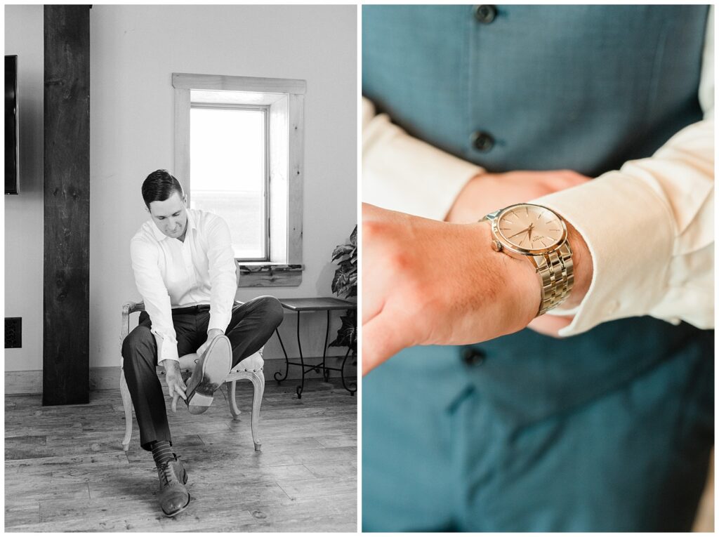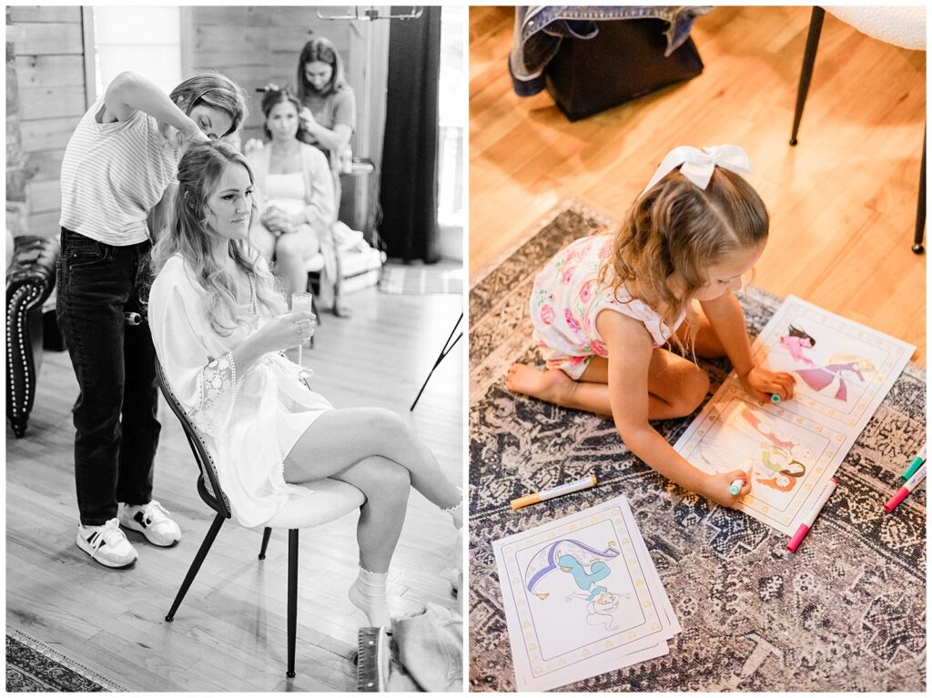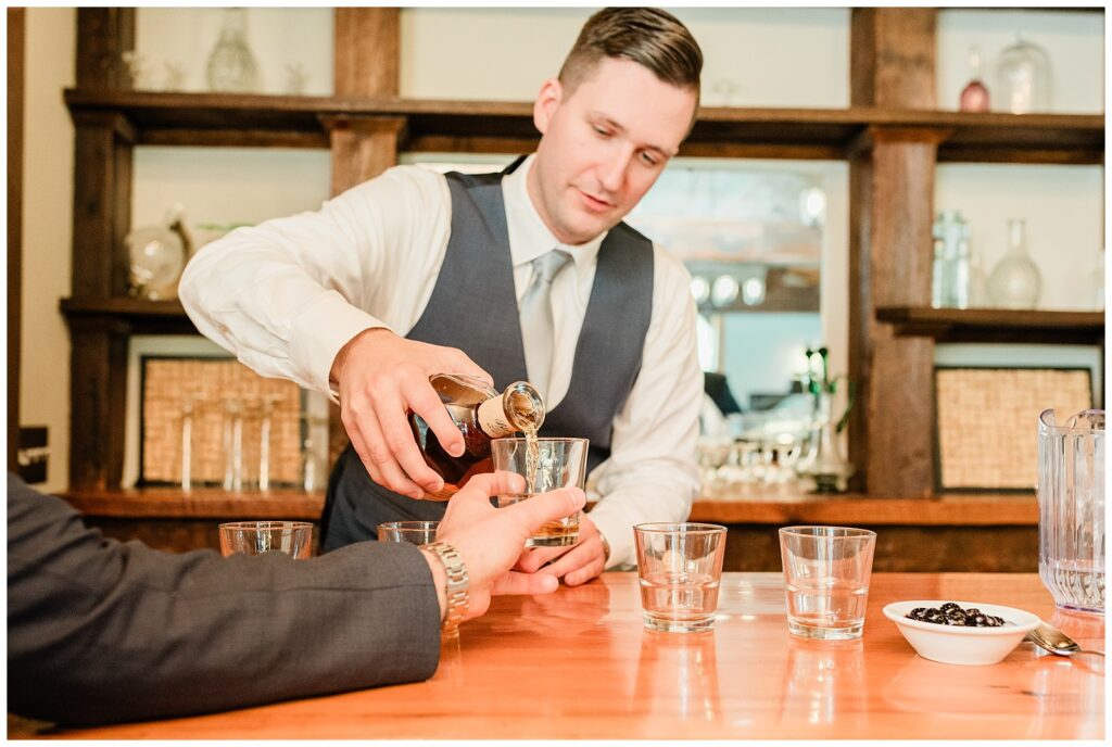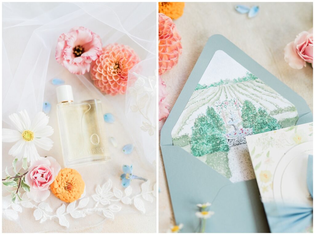 The invitations were a collaborative DIY effort by a very talented set of ladies! Kristin’s mom and sister painted the water color elements and Kristin designed them! Those art pieces were used in other signage throughout the day too! To continue on that watercolor theme, Kristin and David hire a super talented watercolor artist to paint the guests as favors during the reception!