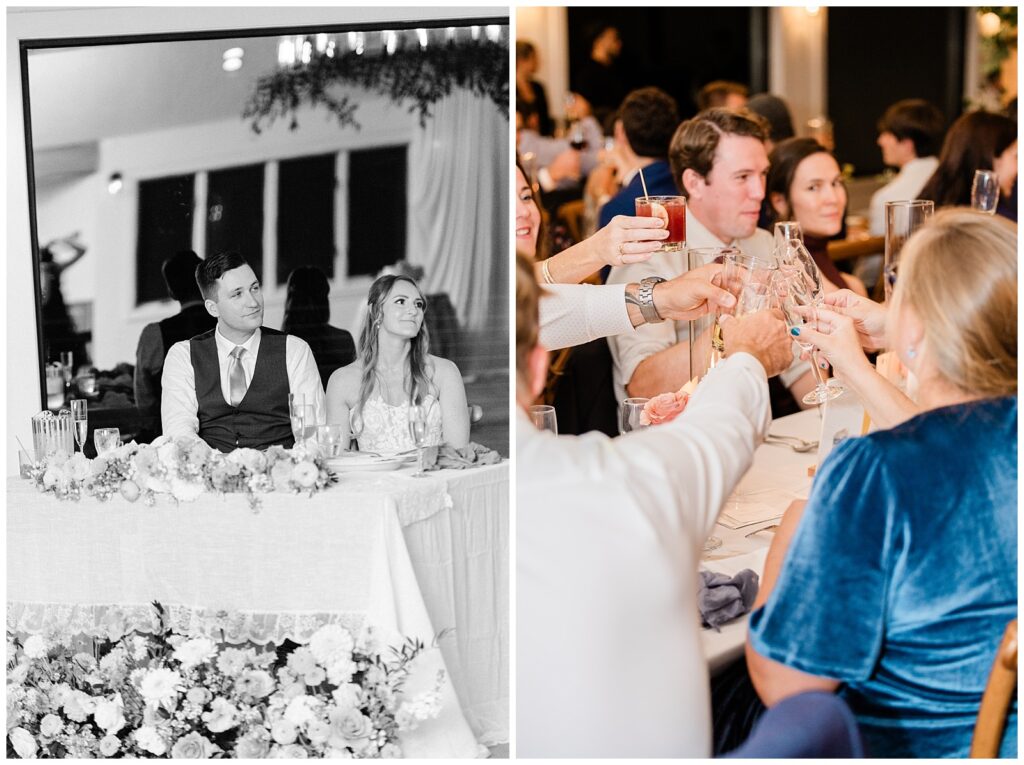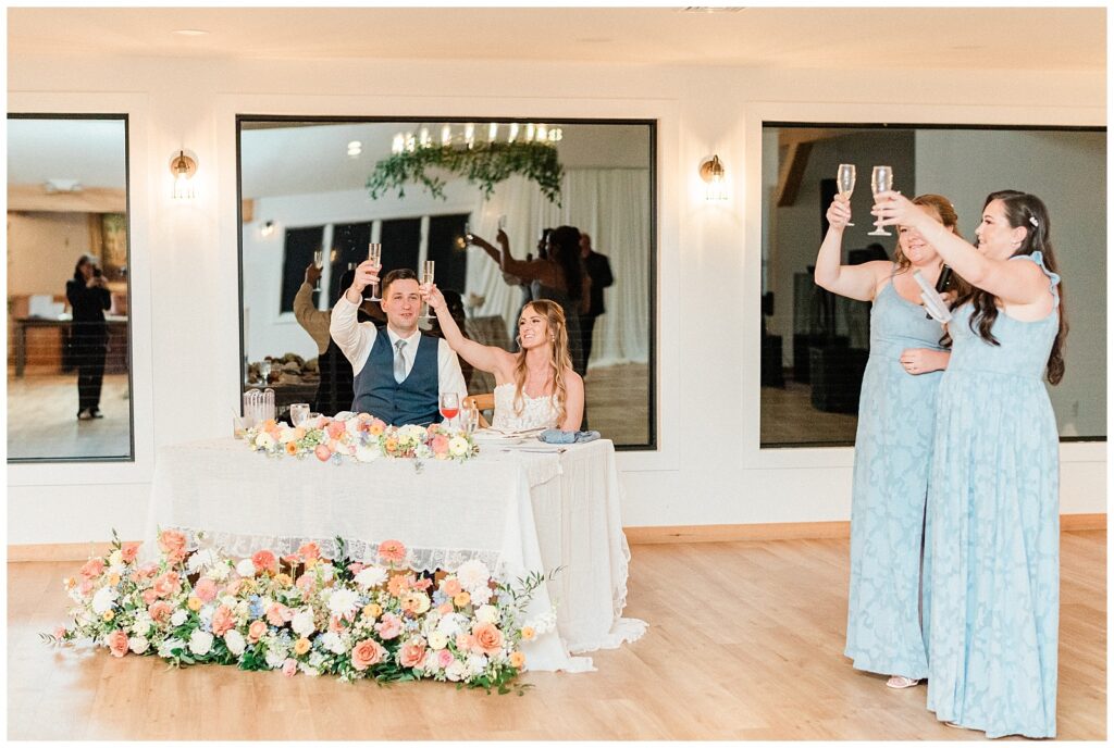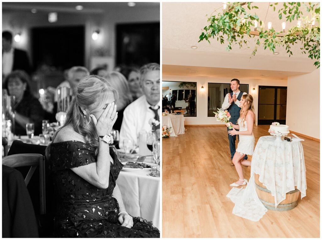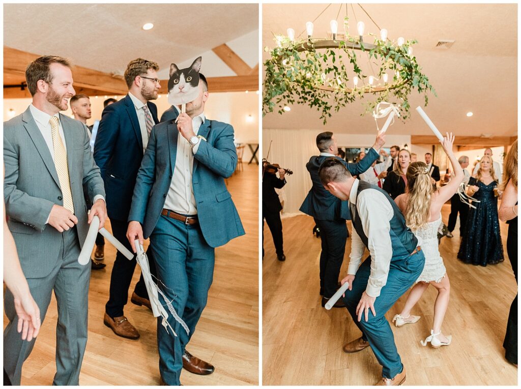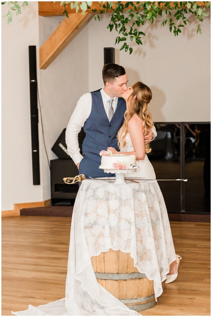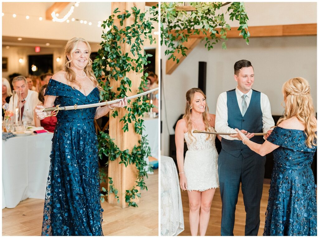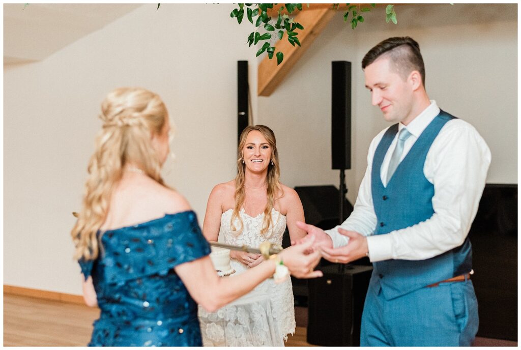 Kristin wore her mom’s wedding veil (modified with some lace from her own wedding dress), which was so beautiful and perfectly fit with her dress! Not to mention the sentimental factor of getting to wear a piece of her mom’s wedding look! Kristin & David also cut their wedding cake an heirloom historic family sword, that was so special! I also loved that instead of a bouquet toss, Kristin surprised her mom by dedicating the bouquet to her after cake cutting!