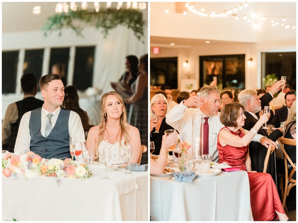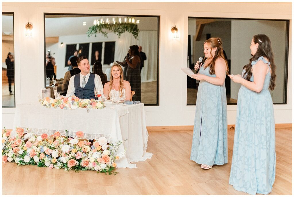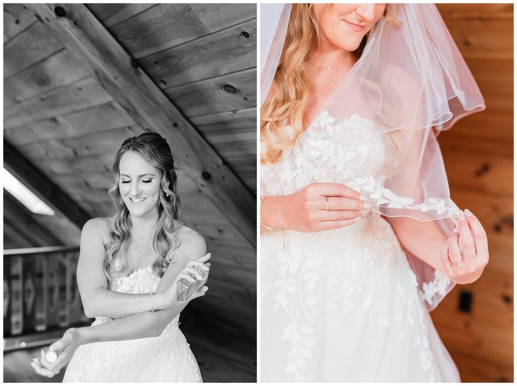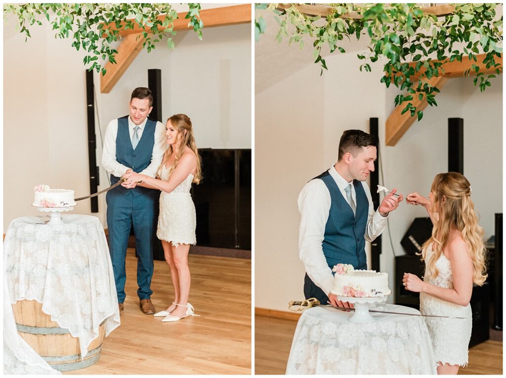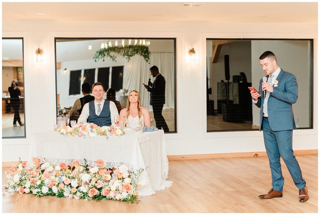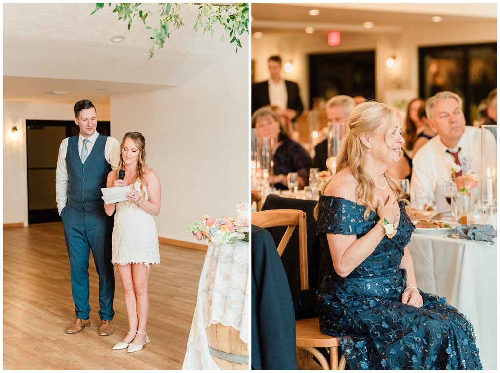 Kristin wore her mom’s wedding veil (modified with some lace from her own wedding dress), which was so beautiful and perfectly fit with her dress! Not to mention the sentimental factor of getting to wear a piece of her mom’s wedding look! Kristin & David also cut their wedding cake an heirloom historic family sword, that was so special! I also loved that instead of a bouquet toss, Kristin surprised her mom by dedicating the bouquet to her after cake cutting!