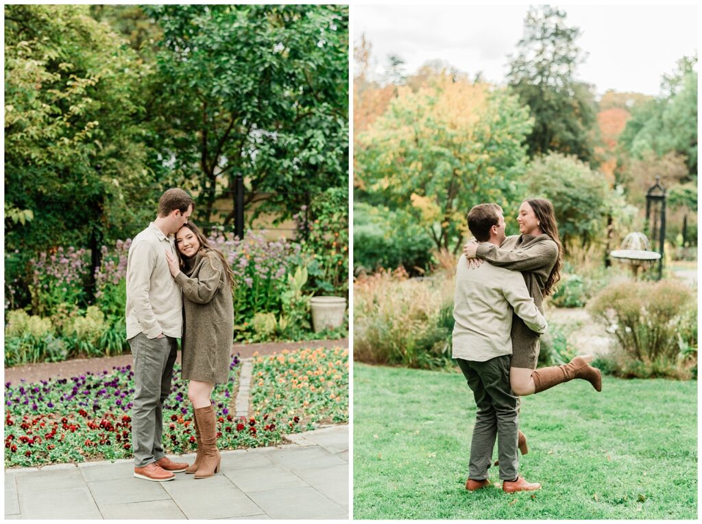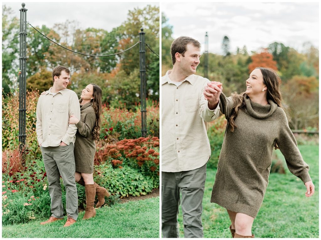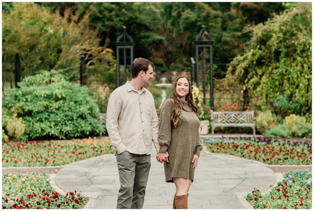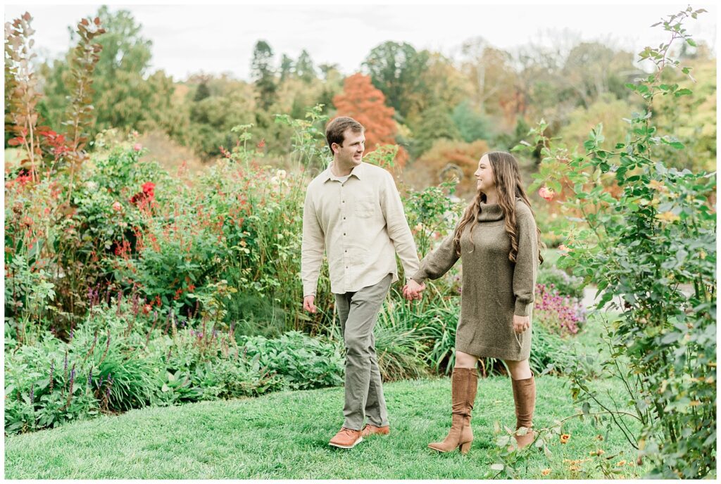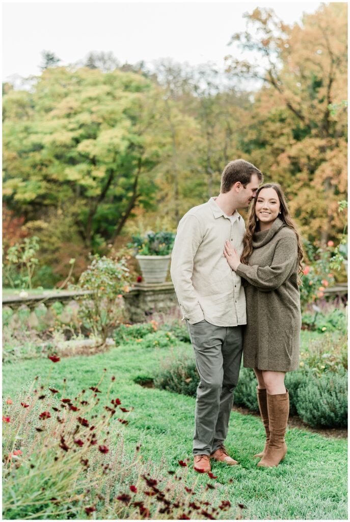 Liz & Corey’s Morris Arboretum Fall engagement session was so much fun! Morris Arboretum is one of those locations that is simply STUNNING year round. Seeing the fall plants blooming and all the foliage from the surrounding trees was absolutely gorgeous and the perfect backdrop for their session! These two are the cutest together, and had perfect fall outfits to fit the vibe! I am in love with their session and can’t wait to share many favorite photos from our afternoon together. But first…their love story!